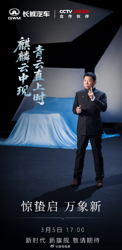 前段时间预告,魏建军让大家猜一下的长城麒麟豪华新旗舰车型今天(3月5日)就要召开发布会了