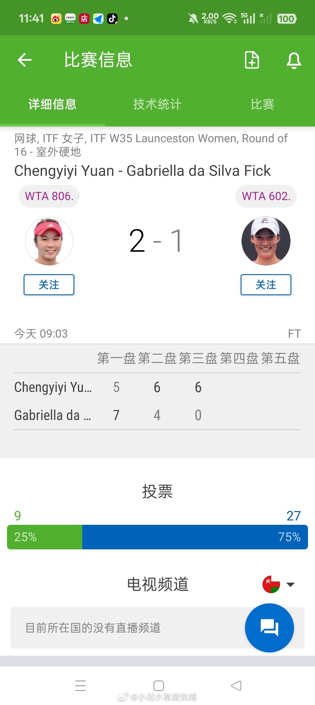 小花小草资讯 【朗塞斯顿W35】女单正赛第二轮袁程依依🇨🇳以5-7/6-4/6-0逆转🇦🇺菲克晋级八强袁程依依收获8分下轮对手5号种子乔杜里