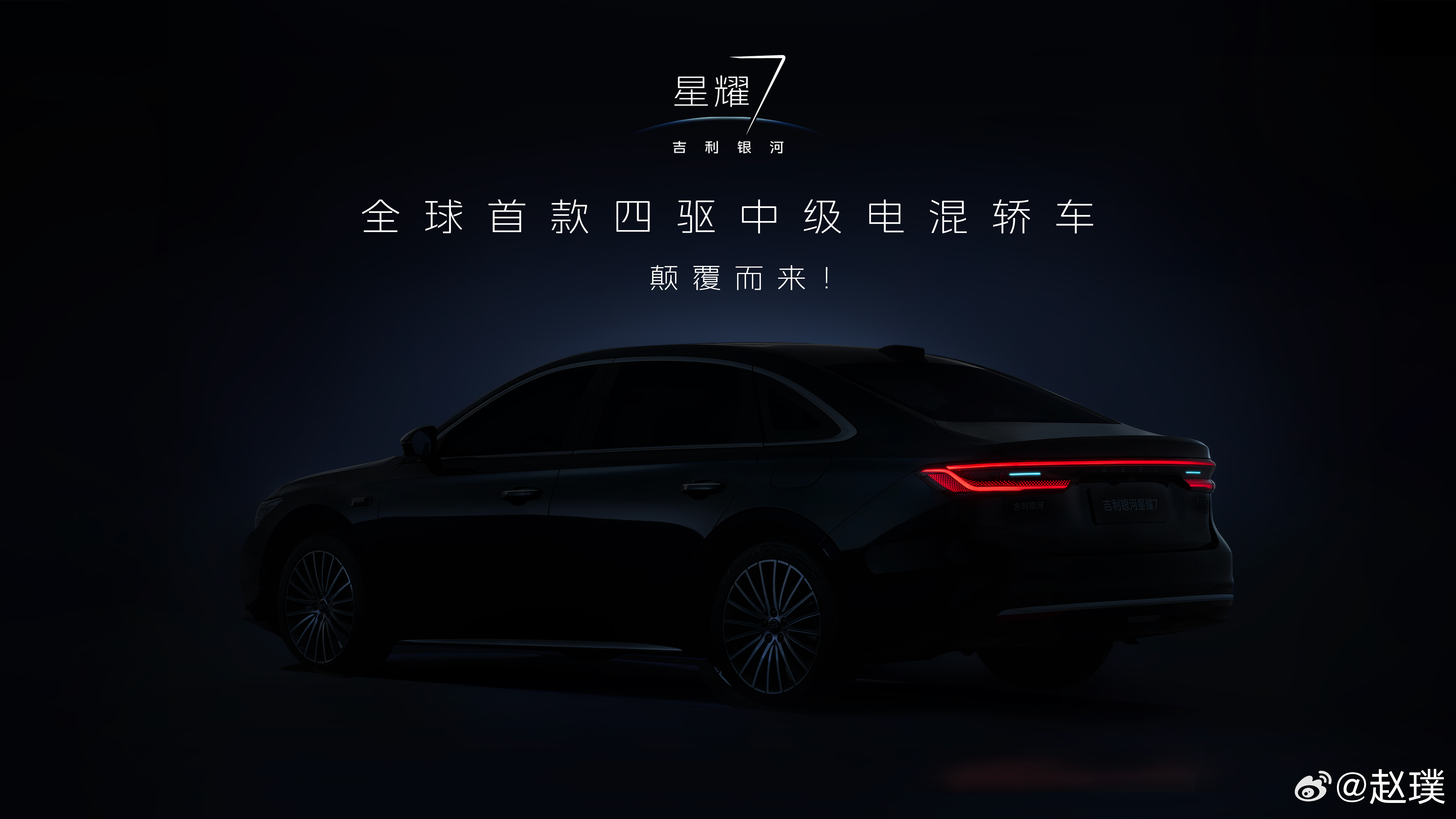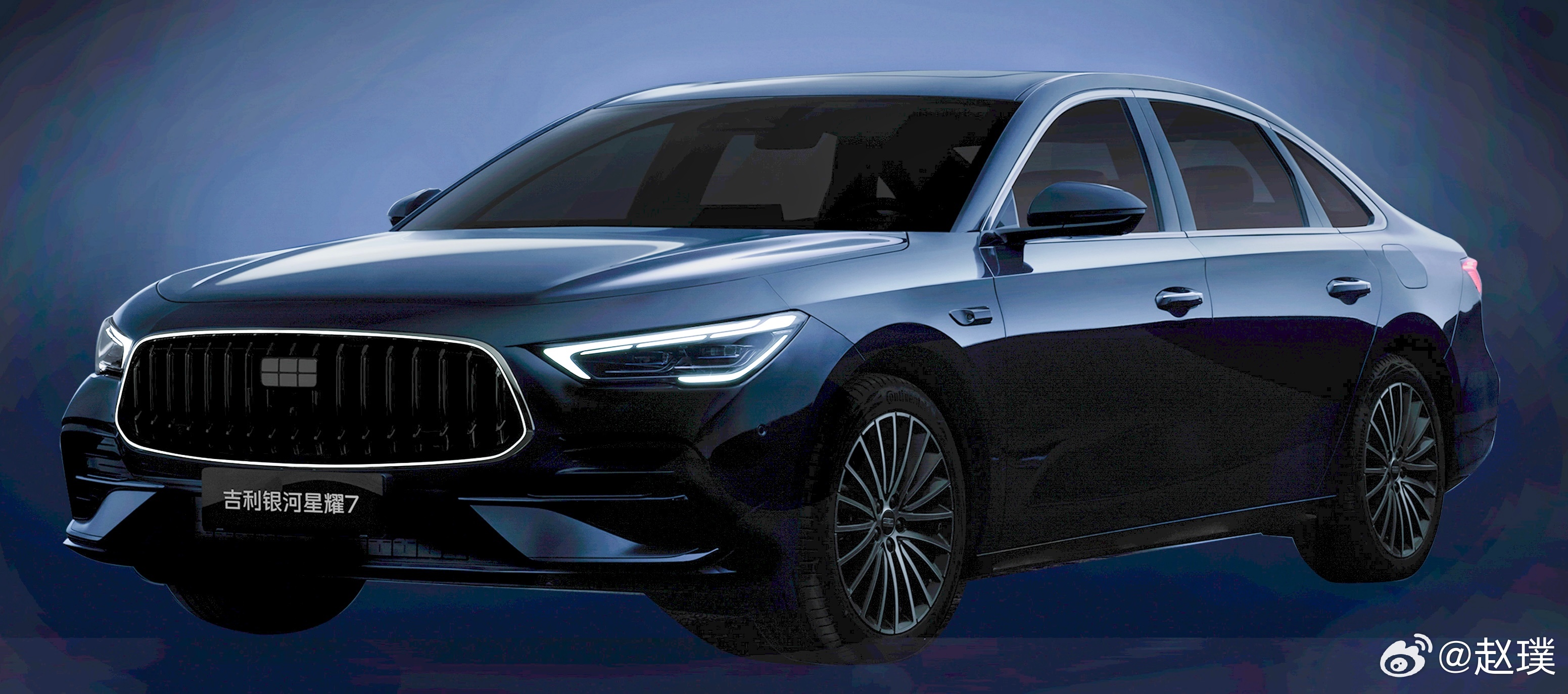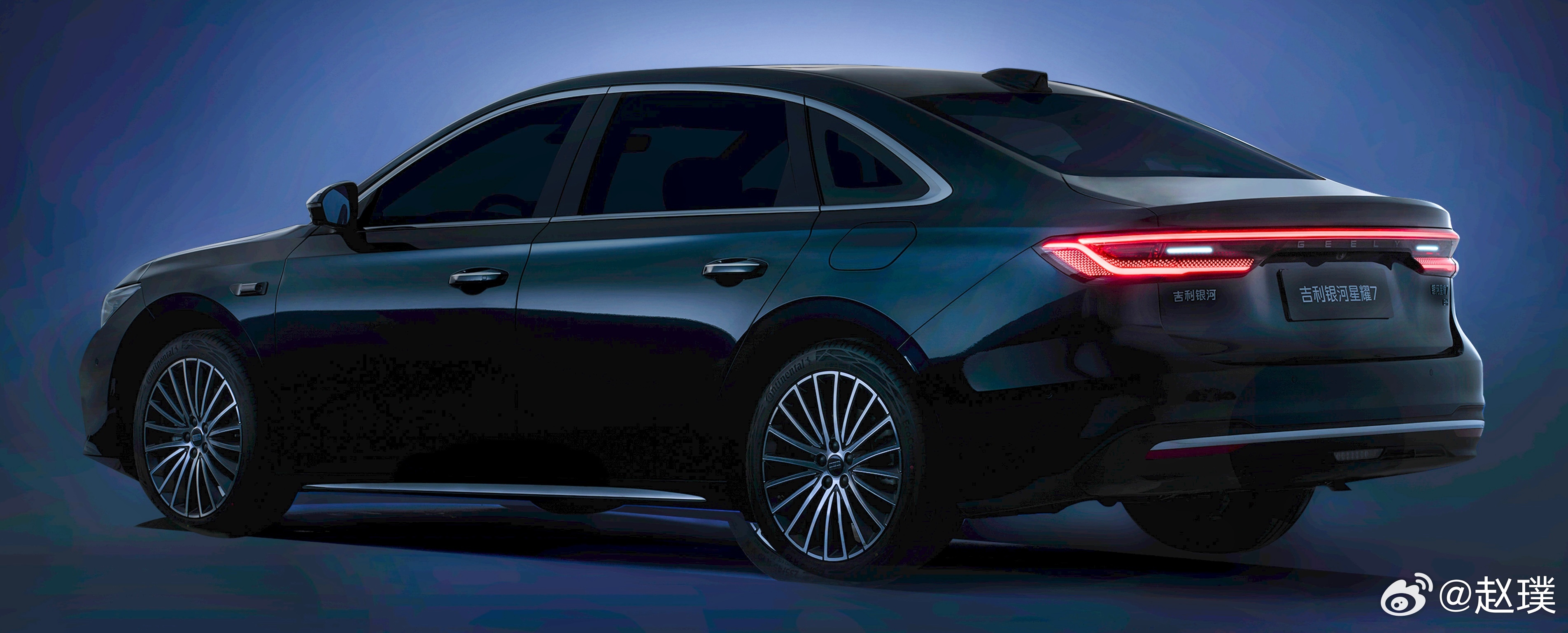 吉利银河星耀7官图来了。这是银河品牌进军豪华轿车市场的全新旗舰,也是首款搭载四驱的中级电混轿车。虽然是黑棚图,不过拉一下亮度基本能看到车身线条了。怎么样?还挺好看的吧?