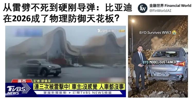 比亚迪元PLUS硬抗导弹波及,安全实力出圈 跟大家说个比较震撼的事儿!3月1日一枚伊朗导弹在耶路撒冷周边炸了,威力大到路面炸出明显弹坑,旁边的车全被砸得稀烂,交通标志牌都直接被炸飞。 最巧的是,有一辆比亚迪元PLUS,海外叫ATTO3,刚好在爆炸附近,算是贴身被波及了。从现场图能看出来,这车外观惨得不行,车窗全碎了,车身也确实变形了,到处都是损伤,但核心表现真的让人感到了中国造的强大。 说出来你们可能不信,这车居然扛住了导弹余波!整体车身没塌,车门还能正常打开,车内气囊也准时弹出来了,最关键的是,作为电动车,它没起火、没出现热失控,这在这种极端情况下太不容易了。 车上一共5个人,万幸没人死!就司机受了中度伤,两个人轻伤,还有两个只是受了惊吓。后来比亚迪王朝网的总经理路天,也转发了这个新闻,还说“安全就是最大的豪华”,相当于官方证实这事儿是真的。 平时我们聊汽车安全,都是说什么碰撞测试、几星评级,那都是实验室里的。但这次不一样,这是真刀真枪的考验,可以说极端考验下更显安全实力。 其实早在2022年,比亚迪元PLUS就拿过EuroNCAP五星安全评级,那可是汽车界最权威的认证。它能这么能扛,也不是运气,多亏了e平台3.0的安全车身,用了好多高强度钢,关键部位的热成型钢强度超高,才给车里人保住了活命的空间。