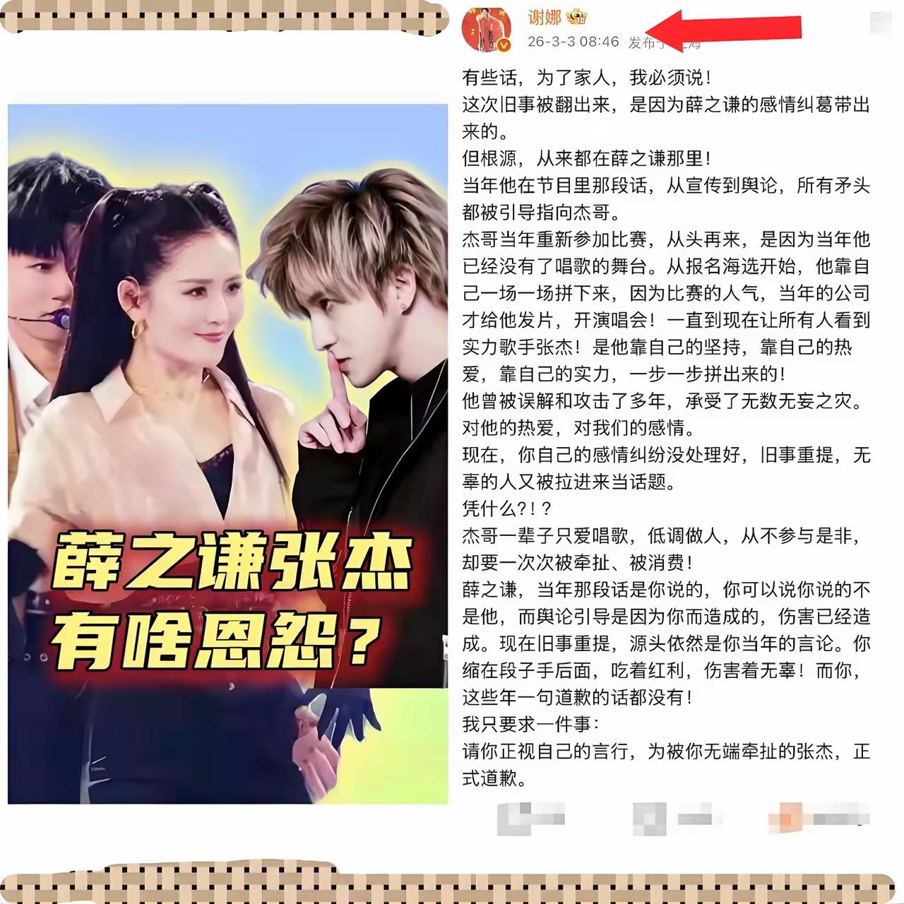 张杰薛之谦的瓜越来越有意思了, 有网友分析,谢娜跳出来根本原因不是为了替张杰鸣不平,而是为了敲打张杰,让他别忘了来时路。 现在张杰越来越火,已经超过谢娜的掌控了,同时谢娜的主持事业下滑,尤其是《快本》停播之后,她就没有代表作了。 这么一说还真有几分道理,你们觉得呢?