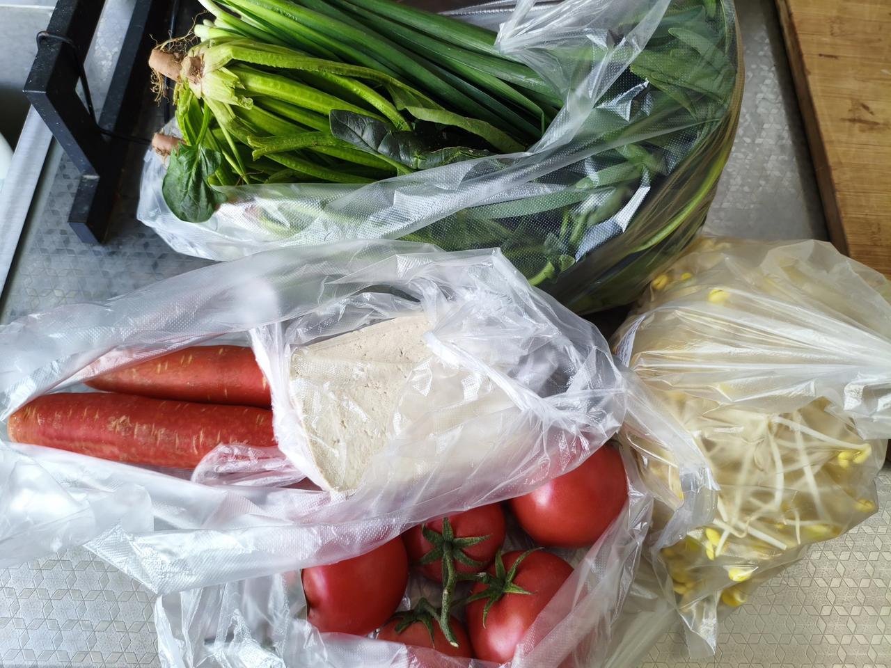 早上在早市转,看着新鲜水灵的菜就想买,买了一堆,看看都有啥。 1、菠菜一大把2.2元,脆绿新鲜,还是大田菜,不是大棚种的。 2、红萝卜两根,每斤3元,两根2.7元,和往年比贵点,今年红萝卜白萝卜都比往年贵。 3、韭菜一小把2元,小贵。 4、豆腐一块,2.6元,他们家的豆腐货真价实,浓浓的豆味,就喜欢买他家豆腐。 5、水果西红柿4个,3.6元。今年的西红柿也比往年贵,前段时间卖到一斤8元,这几天便宜了。 6、买了点豆芽1.7元,也不知道斤两,管他去。 算了算,今天买菜共花了15.1元,说起来也不贵,在外边吃碗面也要十几元呢,这些菜我们老两口一天也吃不完。