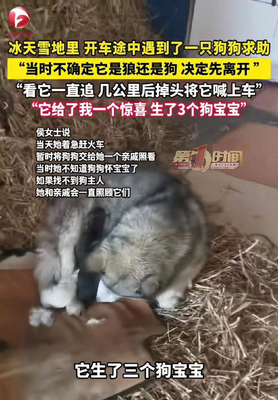 泪目了,黑龙江,女子开车偶遇一只流浪狗追车,追了好几公里都不肯停,女子心软掉头接它上车,没想到狗狗刚安顿好,竟生下三只小狗崽。万物皆有灵!母爱从来不分物种! 2026年3月3日,黑龙江嫩江至黑河的乡间公路。侯女士当天着急赶火车,独自驾车行驶在这段荒无人烟的公路上。 一路上人烟稀少,只有茫茫白雪和光秃秃的树林,荒凉得让人心里发紧,连车窗外的风声都显得格外刺耳。放眼望去,看不到一户人家,看不到一点烟火气,只有无边无际的冷。 路过一片偏僻树林时,她眼角余光瞥见路边雪地里,有个瘦长的黑影在徘徊。 荒郊野岭,天色又冷又暗,那黑影缩在雪堆里,毛发被雪冻得黏结成灰黑色,只露出一个尖尖的脑袋。 侯女士心头瞬间一紧——这荒僻之地常有野狼出没,远远看去,那黑影的轮廓、低头蹭雪的姿态,都像极了狼,尤其是缩着身子的模样,更添几分诡异。 出于安全顾虑,加上还要赶火车,她没敢停车,轻轻踩下油门,继续往前开,手心悄悄沁出冷汗。 可她刚开出不远,下意识再看后视镜—— 那一刻,她的心猛地一揪,像被一只手紧紧攥住,瞬间喘不上气。 雪地里,那只动物竟然追了上来! 走近了才看清,那哪里是什么狼?分明是一只流浪狗,身形消瘦,却透着一股执着的韧劲。它踩着没脚脖子的深雪,四肢冻得僵硬,爪子踩在雪面上,每一步都走得踉跄、摇晃,好几次脚下一滑,差点重重摔倒在雪地里,又拼命撑着站起来。 可它没有放弃。 拖着疲惫不堪的身体,顶着刺骨寒风,在白茫茫的雪地里,拼命跟着汽车奔跑。 风雪打在它的脸上、身上,它连躲都不躲,只是一门心思往前追,呼吸越来越急,胸口剧烈起伏,白气一口接一口喷在冷空气中。 它不叫、不扑、不凶,不拦车、不吓人。 只是大口喘着白气,尾巴轻轻、小心翼翼地摇晃,用最卑微、最温顺、最无助的姿态,一路追、一路追。它不敢靠近,不敢打扰,只是用尽全力,跟着那辆能带给它希望的车,仿佛那是它活下去的唯一指望。 侯女士从后视镜里看着那个小小的、在风雪里拼命奔跑的身影,先前的恐惧瞬间化作酸涩的心疼,鼻子一阵阵发酸,她虽然赶火车,却实在无法丢下这条生命。 再也不忍心,侯女士当即打方向盘掉头折返。 车缓缓停在狗狗面前,她轻轻推开车门,试探着伸出手,温柔招手,声音放得极轻,生怕吓到它:“过来,不怕。” 下一秒,让人泪目的一幕发生了: 这只在野外求生、本应充满警惕的流浪狗,瞬间放下所有戒备,没有一丝犹豫,拖着消瘦的身子,艰难却轻快地跳上车。 它浑身冰冷、沾满雪水,毛都冻成一缕一缕,结着细小的冰碴,却异常乖巧,一声不吭,只是轻轻发抖,眼神里满是疲惫、委屈,还有一种终于安心的放松。 返程途中,车厢里的温暖还未完全驱散寒意,被救下的狗狗竟突然蜷缩起来,呼吸变得急促。没过多久,三只粉嫩的小狗崽陆续降生,小小的身子在座位上微微蠕动。 侯女士看着这一幕,彻底泪崩,心口又酸又烫。 她这才恍然大悟: 这只狗狗一路追车,不是为了一口吃的,不是为了自己取暖。 它是拼尽最后一点力气,在冰天雪地里,为即将到来的孩子,抢一个能活下来的家。 它用几公里的奔跑,赌一次人间的善意。 它用自己的坚持,换孩子的生路。 这份跨越物种的母爱,深深击中了侯女士。 车到亲戚家后,她和亲戚一起,细心照顾刚生产完的狗妈妈和三只幼崽,给它们温暖的窝、充足的食物,不让它们再受一点冻、一点惊吓。 对于未来,侯女士也给出了最温暖的承诺:如果一直找不到狗狗的原主人,她们会一直照顾这一家四口,给它们一个安稳、永久的家,再也不让它们流浪、挨饿受冻。 消息来源:AHTV第一时间及网络公开内容,本文配图/视频素材来自AHTV第一时间,以上仅用于内容分享,侵权即删,谢谢!