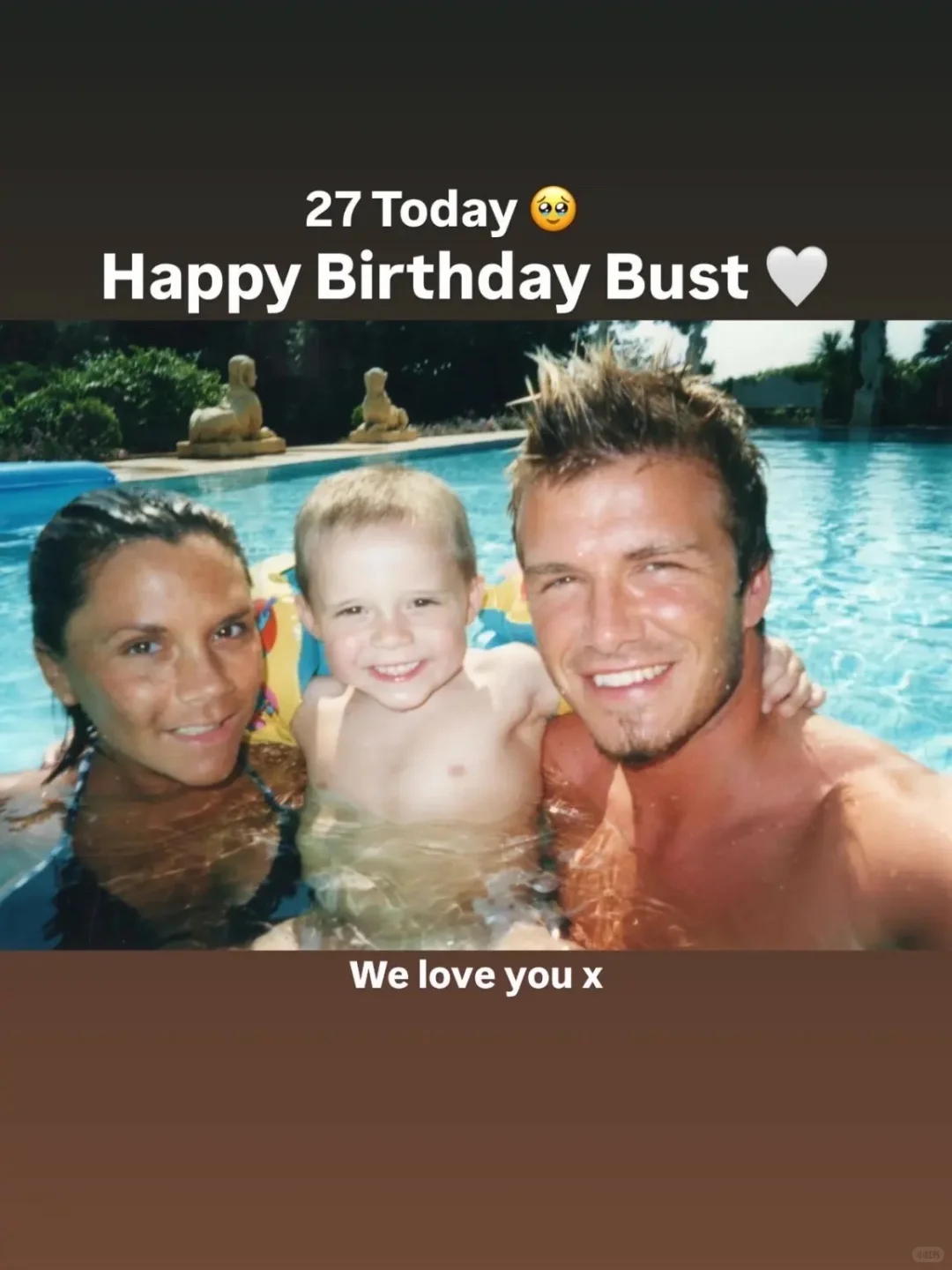 贝克汉姆夫妇给大儿子庆生 在布鲁克林·贝克汉姆27岁生日这天,作为父母的贝克汉姆和维多利亚姆仍向他公开送上了生日祝福。尽管此前长子布鲁克林已将他们拉黑、并公开控诉家庭关系破裂。