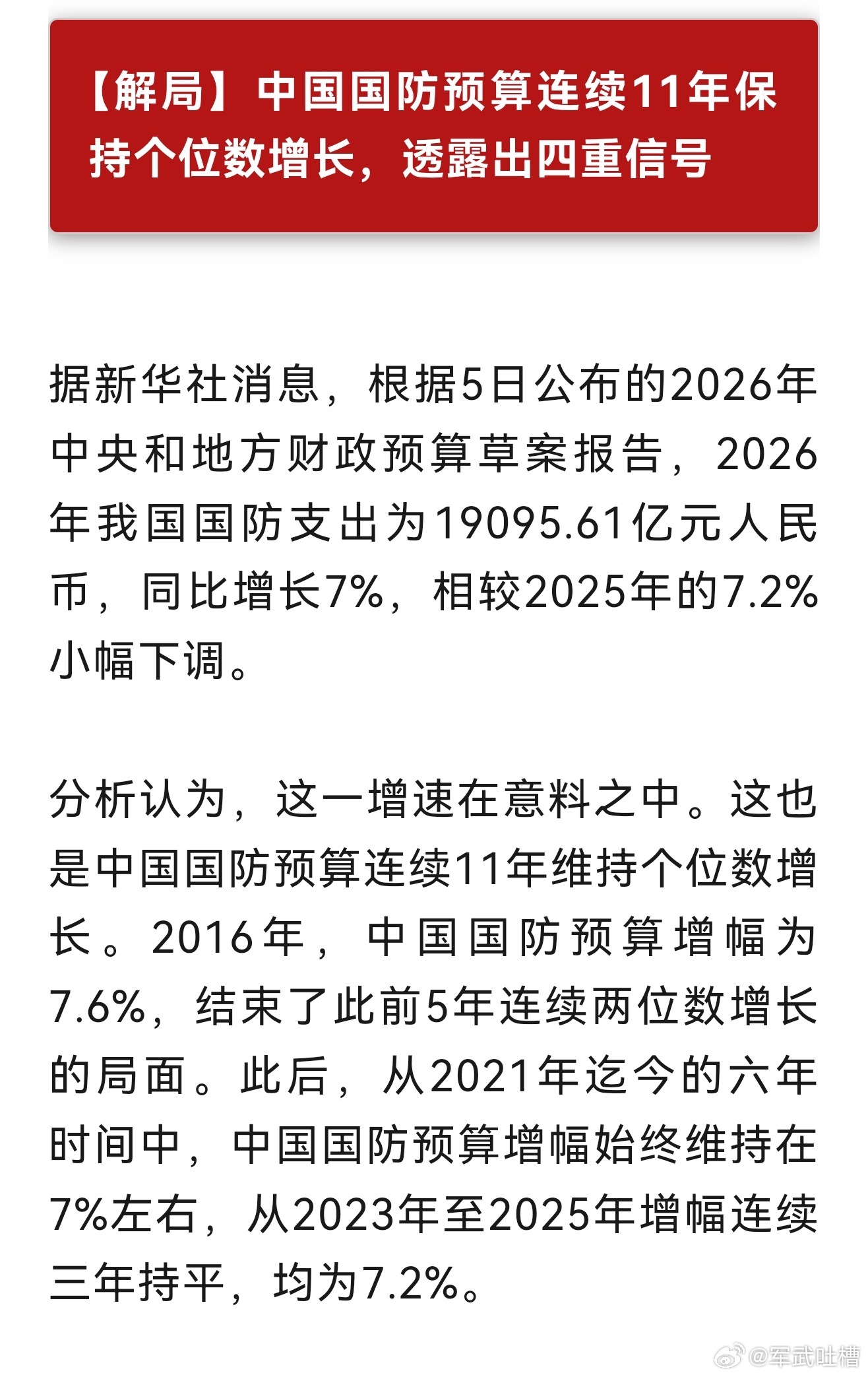 今年国防预算19095.61亿元人民币,同比增长7%,约合2770亿美元相比美国的9000亿美元国防预算,我们确实少多了但是以购买力和执行效率计算,美国9000亿美元能干的事,真没我们2770亿多推进祖国统一2026政府工作报告