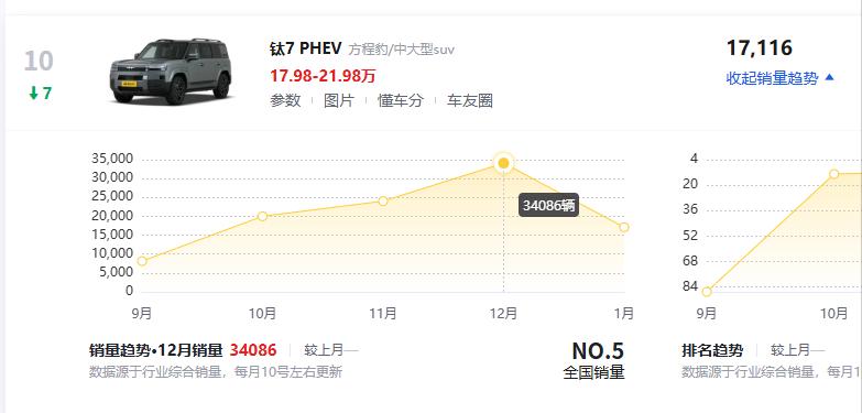 “方程豹钛7,我个人不推荐!” 这不是我说的,是一位汽车女博主说的,她认为这辆车的定义很拧巴,也就是定位不清晰,有点模糊的意思吧。 她说方程豹钛7外观是方盒子造型,底盘是纯舒适性家用取向的,也就是城市SUV风格。她说这么做会带来两个问题,第一就是风噪大、油耗高、电耗高;第二是更容易侧翻。她的建议是要么买一辆轻越野能力的方盒子车型,要么买一辆纯粹的家用SUV。 个人觉得她的思维还停留在油车时代,不符合现代消费者对汽车的需求。为什么这么说呢?第一从产品的销量来说,方程豹钛7自推出以来,月销量可是有目共睹的,最高达到34086辆,对于这一级别的车来说,销量用火爆来形容它是一点都不夸张的。 第二,从她的言语中可以看出,她认为方程豹钛7不是一款具备轻越野能力的方盒子车型,然而,方程豹钛7有明确的轻越野能力,四驱版可覆盖绝大多数城郊非铺装、轻度户外场景,两驱版也能应对基础轻野需求。 看看方程豹钛7的参数可知,最小离地间隙,空载 210mm(满载约 190mm);接近角:24°;离去角:25°;涉水深度:600mm;底盘:前双叉臂 + 后五连杆独立悬架,高配带云辇 - C智能阻尼;承载式车身(非硬派大梁),适合轻野而非极限越野。 四驱版还配有后桥差速锁 + 电子限滑,可应对轻度交叉轴、单侧打滑;12 种地形模式,包括泥地 / 沙地 / 岩石 / 雪地 / 蠕行 / 涉水等;还有蠕行模式,低速稳定通过湿滑陡坡、崎岖小路。这不是轻越野能力吗? 至于说到风噪大、油耗高、电耗高,这不是纯油车,方盒子造型确实会影响这些,但是,相对于纯油车来说,方程豹钛7馈电油耗 5.1–6.4L/100km之间,油耗很高吗? 还有一点她可能忘记了,现代很多消费者喜欢的就是方盒子造型,并不是真的想要去越野,就纯粹想要方盒子造型的车,何况方程豹钛7造型真的挺好看的,这一点很重要。好看、好开、车又大、空间也大,符合自己的需求,买车总要有取舍的,适合自己的就是好车。 其实你推不推荐不重要,可能你是想用这个话题来引起讨论,引来流量,引来关注,博取眼球,消费者才不会关心,他们只关心这车自己喜欢,这才是最重要的。这车黑色是真的帅,大家觉得我说的对不对?