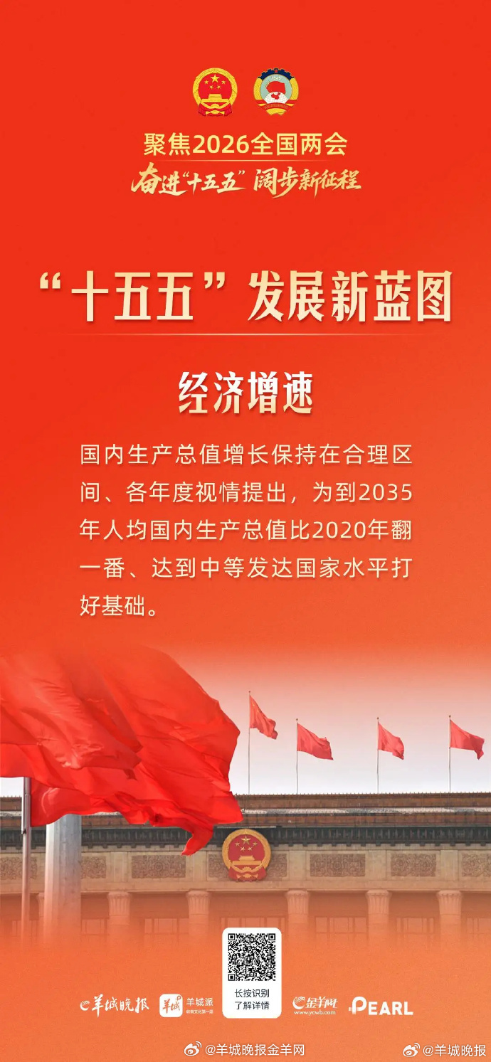 【10张海报读懂“十五五”发展新蓝图】3月5日上午,十四届全国人大四次会议在人民大会堂开幕,政府工作报告提出了“十五五”时期主要目标和重大任务,10张海报带你读懂“十五五”发展新蓝图。#2026年全国两会看广东##2026全国两会齐关注##两会#([原创]记者:罗仕、陈健怡)