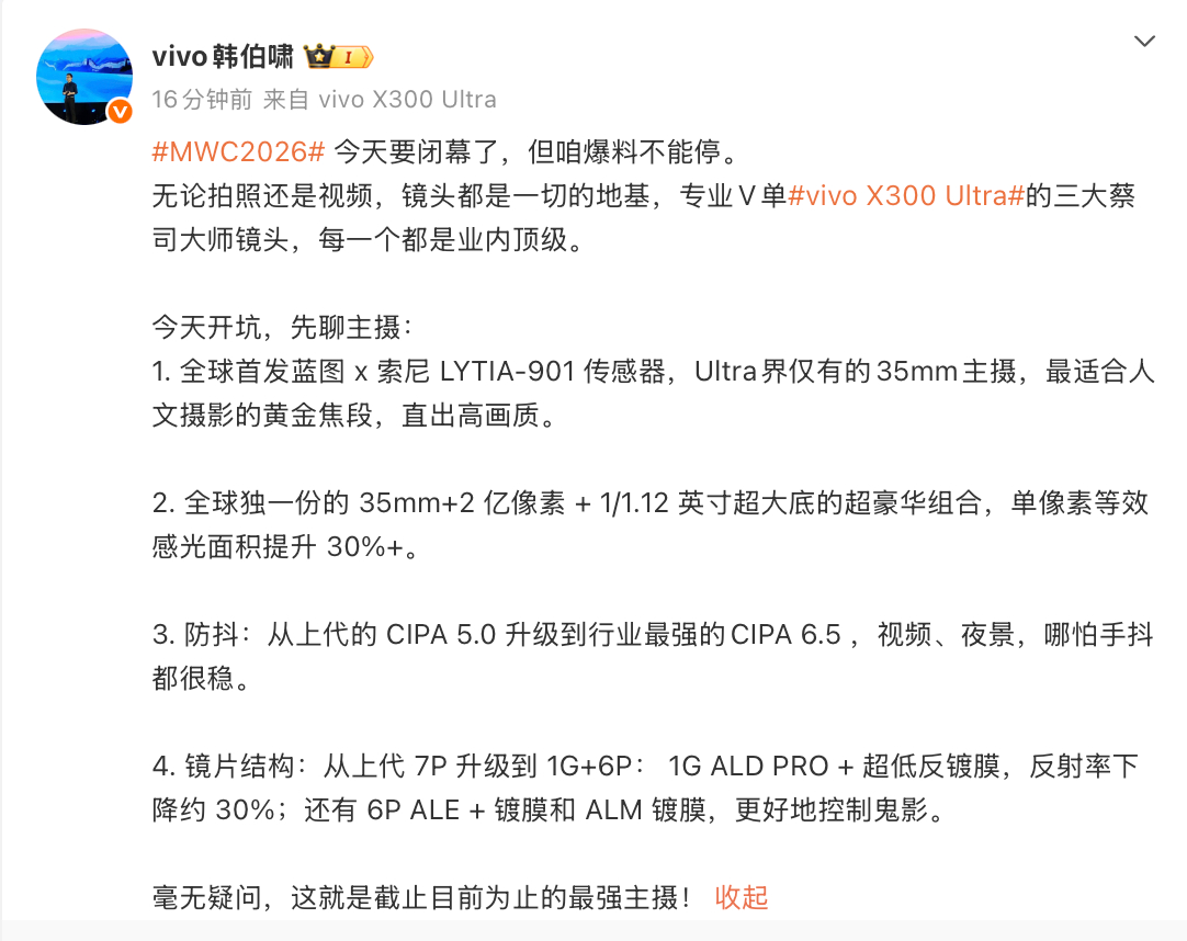vivo X300 Ultra的主摄配置太顶了吧!而且三大蔡司大师镜头,每一个都是业内顶级