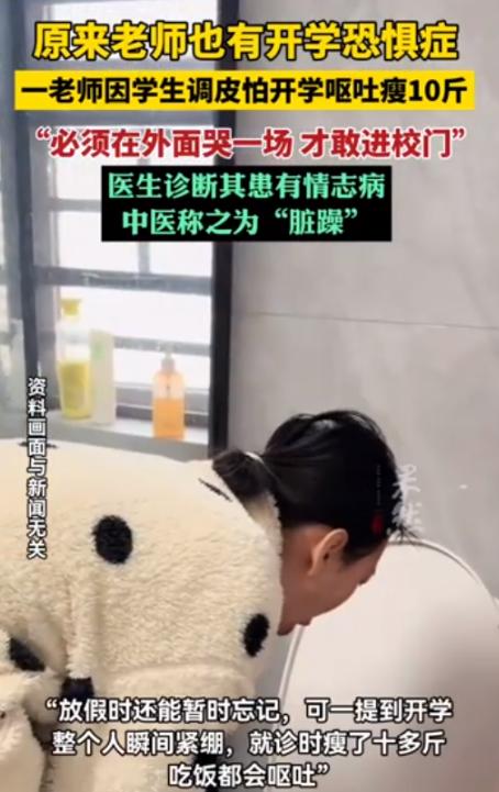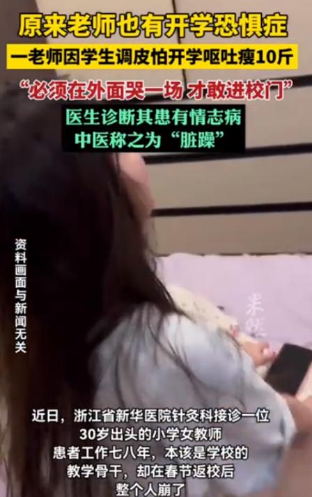浙江杭州,一老师因班上男生太过调皮,自己管不住,就被气得吃不下饭,直接暴瘦十多斤,并且每次进学校前,都要大哭一场才能踏进校门,时间久了,老师的情绪彻底崩溃,只能去医院就医!网友:太心疼了! 清晨的校园周边总飘着朗朗读书声,来往的学生蹦蹦跳跳,满是少年朝气,很少有人留意到街角树荫下藏着一位年轻老师的崩溃。 她刚接手这个班级时,满心都是对教学的热爱。 班里大部分孩子乖巧懂事,唯独一个男生像有着永远用不完的精力。 上课铃声落下,其他孩子都端正坐好,他却随意起身下位,把原本有序的课堂搅得鸡犬不宁。 最开始的她觉得孩子只是年纪小,调皮是天性。 为了管好这个孩子,她试过课下单独拉着男生谈心,语气温柔地讲遵守纪律、尊重他人的道理。 看着孩子点头答应的模样,她总以为下次会有改变,但那男孩仍然想干嘛就干嘛。 每天站在讲台上,她都必须提着十二分精神,时刻紧盯那个男生的举动。 一节课四十分钟下来,她整个人都身心俱疲,仿佛耗尽了全部力气。 下班回到家,白天的焦虑与委屈翻涌而上,面对家人准备的饭菜,她半点胃口都没有,偶尔勉强吃几口,也会因为心里堵得发慌,忍不住反胃呕吐。 家人看在眼里急在心里,一遍遍劝她放宽心。 可身为班主任,她放不下班里的孩子们,只能咬着牙硬撑。 从最初满怀信心耐心引导,到后来一次次失望,再到最后彻底陷入无力绝望,她的情绪被慢慢消耗殆尽。 每天清晨醒来,一想到要去学校、要面对管不住的男生、要应对随时可能混乱的课堂,心慌、手抖、胸闷的感觉就瞬间席卷全身。 她开始本能地害怕走进校园,害怕踏上熟悉的讲台,那扇每日必经的校门,不再是教书育人的温暖阵地,反而成了让她恐惧退缩的关卡。 于是便有了校门口那令人心疼的一幕:每天走到学校附近,她都要找个无人的角落,痛痛快快哭一场,把积攒一整晚的焦虑、委屈、无助全部宣泄出来。 只有哭完了,她才能攒起一点点勇气,走进学校、走进教室,继续扮演沉稳负责的班主任角色。 她也不想这般 “脆弱”,可长期的精神紧绷让她根本无法控制情绪,痛哭成了她唯一的解压方式,成了踏进校门前不得不完成的 “必修课”。 这样的状态持续了很久,白天强撑着完成教学与班级管理,晚上躺在床上翻来覆去彻夜难眠,脑海里反复回放课堂上的混乱场景、管教无果的无奈瞬间。 直到某天,她站在讲台上正准备讲课,看着再次失控的课堂,她突然眼前发黑、浑身发软,差点直直摔倒在讲台上。 这一次,她再也撑不下去了,在家人的反复劝说下,放下手中的教案与课本,走进了医院。 接诊医生仔细询问症状、了解情况后告诉她,身体的消瘦、呕吐、心慌,都是情绪彻底崩溃发出的求救信号,必须立即暂停工作,安心接受专业治疗与休养。 拿着诊断书的那一刻,她终于绷不住积攒已久的情绪,这么久的坚持、隐忍与委屈,在这一刻有了清晰的答案。 她不是不够负责,不是不够坚强,只是被无尽的压力彻底压垮了。 经历过一段时间的调养后,她的状态好多了,而在此期间,她从未磨灭对教育事业的热爱,依旧喜欢孩子,只是心底多了一份小小的期盼,希望再次站上讲台时,能少一点无力感。 这件事被分享到网络后,大家纷纷留言诉说感受。 有网友说:“看着文字就鼻子发酸,深深理解老师的不易”。 还有同为教师的网友分享自身经历,坦言遇到调皮难管的学生,真的会陷入管也不是、不管也不是的两难境地。 (信息来源:经视直播《30岁女教师暴瘦10多斤,吃饭会呕吐,进校前必须大哭一场才敢进门,医生:这是情志病》)