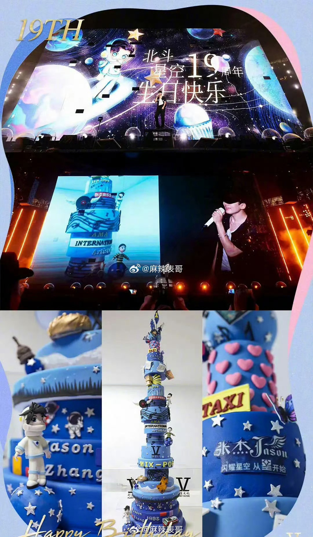 2023年,张杰演唱会的时候,说是给歌迷过生日,定制了一个19层的生日蛋糕。当时还有新闻。