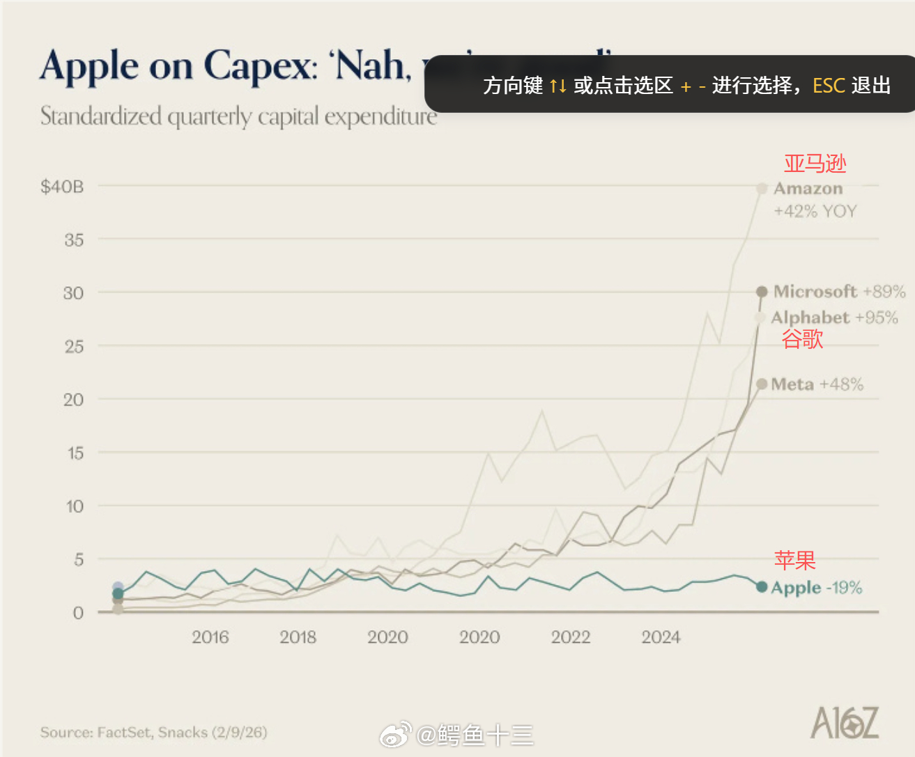 a股 这次Ai基建中只有苹果没怎么参与,iPhone也还没有完全Ai化还在早期!机会还有好多好多图上的意思是,所有的硅谷科技公司都在拼命增加支出仅仅是为了给英伟达送钱,苹果例外。