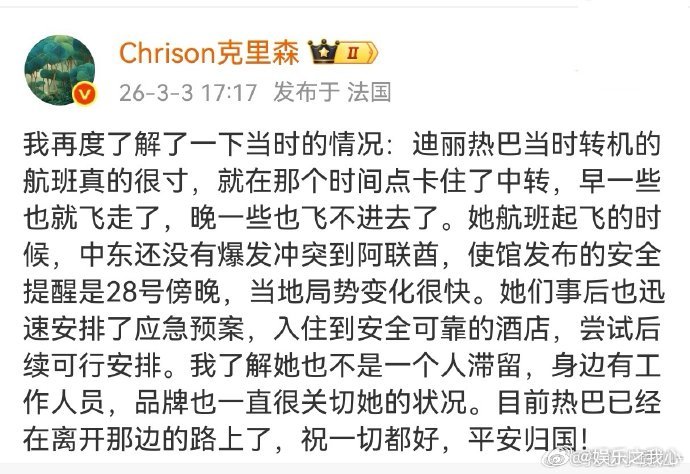 迪丽热巴已安全回国家人们!今天有个超让人安心的消息传来,迪丽热巴已经安全回国啦!