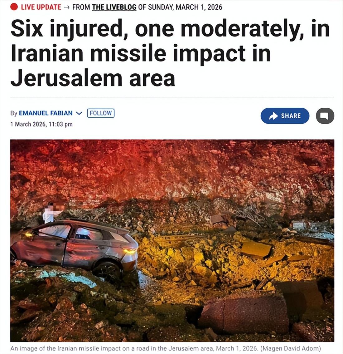 谁能想到?一辆中国家用车,竟然在导弹爆炸的致命冲击下,保住了全车5人的性命! 这件事就发生在近期的耶路撒冷,根据《以色列时报》和以色列红十字会的官方报道,事件属实,细节被完整记录在册。 当地时间3月1日,伊朗向以色列发射多轮导弹,其中一枚落在耶路撒冷郊区高速,炸出直径超5米的深坑,现场多车直接报废起火。 一辆白色比亚迪元PLUS(海外版ATTO 3)正载着5人行驶,刚好被爆炸冲击波和弹片“贴身”击中,半个车身滑入弹坑,外观满目疮痍。 从现场画面能看到,车身布满弹片划痕,车窗全碎,侧面严重褶皱,看起来几乎报废。但让人震撼的是,核心安全结构没被破坏。 以色列红十字会通报显示,5名乘员仅1人中度受伤、2人轻伤,其余2人只是受惊吓,无一人死亡,生存概率堪称奇迹。 救援人员直言,这种强度的导弹冲击,普通民用车辆乘员生还率几乎为零,比亚迪的表现太不可思议。 更关键的是,车辆ABC柱没有丝毫坍塌,四个车门能正常开启,为逃生留出关键通道,这是保住性命的重要原因。 最让人放心的是底盘的刀片电池,经历剧烈震动和弹片冲击,全程没起火、没泄漏,杜绝了二次危险。 比亚迪官方也确认了此事,王朝网销售事业部总经理转发报道,配文“安全是最大的豪华”,印证了事件真实性。 很多人好奇,它为啥能扛住?根据新华网报道,刀片电池早已通过新国标全项检测,采用稳定的磷酸铁锂材料。 这种材料就算被撞得内部短路,也很难释放氧气,从根源上避免起火爆炸,2020年就通过了严苛的针刺测试。 而且车辆采用CTB电池车身一体化技术,形成三层稳固结构,能快速分散冲击波,关键部位用的高强度钢,硬度堪比核潜艇外壳。 出口中东的车型还做了针对性强化,升级了电池散热和电路防护,爆炸后双闪仍能正常闪烁,为救援争取了时间。 事件后,比亚迪海外订单咨询量暴涨,A股股价单日大涨8.36%,市场用资金投票认可这份硬核实力。 这不是营销,是战火给出的最真实答案,中国汽车的安全,从来不是说说而已。