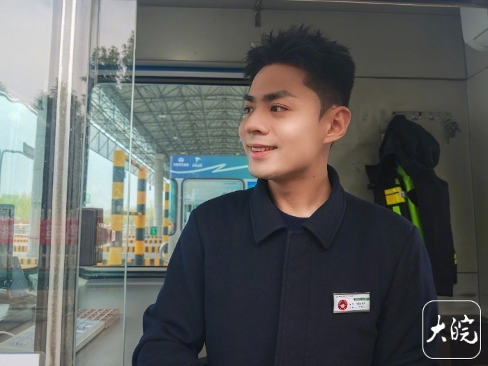 3月5日下午,大皖新闻记者来到马鞍山郑蒲港站,往来车辆不少,许智浩正在岗位上工作。许智浩是一名“00后”,巢湖人,身高192cm,2024年从芜湖一所大学毕业后,来到郑蒲港站成为一名收费协管员,工作以收高速费、保畅交通为主。