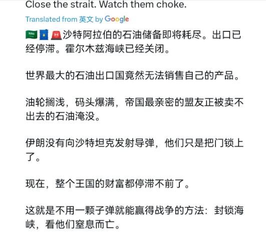 伊朗这一招还是蛮有效的!沙特也被逼到不得不做选择的时候了!3月4日,外媒报道称,沙特阿拉伯的石油存储余量即将耗尽。现在沙特的石油出口已经停滞,霍尔木兹海峡关闭,世界上最大的石油出口国无法运输自己的产品,油轮被困,终端已满,这个国家被卖不出去的石油淹没了。 霍尔木兹海峡这道窄窄的水道,看着不起眼,却是中东产油国的生命线,全球近三分之一的海运原油都得从这里过,沙特更是把75%以上的出口量都押在了这条航道上。伊朗没搞大规模开火,却用更巧妙的方式实现了实质性封锁,让沙特的石油眼睁睁堆在地里、罐里,运不出去换钱。 冲突的导火索是美以联合空袭导致伊朗高层遇袭,伊朗的反击没选正面战场,而是瞄准了最能刺痛对手的能源通道。 他们没直接宣布关闭海峡,却通过军事威慑让航道变成了高风险区。伊朗革命卫队的巡逻舰艇在海峡周边活动频繁,无人机更是直接袭击了沙特和科威特的美国使馆,这种姿态传递出明确信号:敢走这条道就可能面临风险。 更致命的是保险杠杆,国际海事保险公司直接取消了该区域的战争风险等级,少数能投保的保费也暴涨50%,德国赫伯罗特这样的航运巨头还加征了每集装箱1500到3500美元的风险费。 船东们没人愿意冒这个险,原本每天120多艘次的船舶通行量,一下子跌到了40艘次以下,150多艘油轮只能在海峡外围抛锚待命,其中60艘超大型油轮占了全球近8%的运力,相当于直接冻结了一大块全球石油运输能力。 沙特的存储危机来得比预想中更快。作为石油出口的核心枢纽,东部的朱艾马终端和拉斯塔努拉炼油厂已经濒临满罐状态,后者6个储罐里4个都装满了原油,空闲储油能力迅速耗尽。 整个海湾地区的陆上存储总量约3.5亿桶,现在已经用了一半,而实际运营中储油不能超过标称容量的80%,剩下的可用空间只有1亿桶左右。 沙特每天产油1000万桶,原本每天要出口7.5万桶,现在出口通道被卡,新产出的原油没地方放,就像家里水龙头一直开着,下水道却堵死了,溢出来只是时间问题。 隔壁的伊拉克已经先一步扛不住,巴士拉码头的剩余存储量不够两天出口,只能关闭最大的鲁迈拉油田,每天减产120万桶,照这节奏,沙特离被迫减产也不远了。 为了破局,沙特紧急启动了备用方案,把部分出口转到红海沿岸的延布港,靠境内1200公里的东西向原油管道输送原油。这条管道设计日输能力500万桶,现在实际能运420万桶,算是目前最靠谱的替代路径。 但问题没这么容易解决,延布港的装船能力有限,历史最高单日也就装150万桶,就算满负荷运转,也跟不上沙特的出口需求。 而且转道后的运输成本涨得离谱,超大型油轮的运费直接翻倍,部分航线突破2800万美元,日租金飙到28.1万美元,创下2008年以来的最高纪录。 更麻烦的是,红海航线也不是绝对安全,还要经过曼德海峡等敏感区域,加上战争风险附加费和更长的航程,每桶原油的运输成本凭空增加不少,最后要么沙特自己承担利润缩水,要么转嫁到买家身上,怎么选都吃亏。 这场封锁带来的连锁反应已经扩散到全球。国际油价应声上涨,布伦特原油突破80美元/桶,WTI原油冲到76美元以上,高盛测算当前油价里已经包含了18美元的风险溢价。 如果封锁持续一个月,油价突破100美元不是空谈,要是中东爆发全面战争,价格可能冲到120到150美元区间。 除了原油,卡塔尔的液化天然气生产因为设施遇袭全面暂停,全球近20%的LNG出口产能下线,亚洲现货LNG价格面临130%的暴涨风险。这不仅影响能源市场,还会传导到下游化工、运输等行业,推高全球通胀压力。 更关键的是,沙特的困境暴露了其能源出口的结构性弱点。这么多年依赖霍尔木兹海峡这条单一通道,替代方案的建设一直滞后,东西向管道虽然存在,但长期没达到满负荷运营,港口配套也跟不上。 伊朗正是看准了这一点,不费一兵一卒就实现了战略目标,既报复了美以的袭击,又给沙特施加了巨大压力。 现在沙特陷入两难,要么强硬反击可能引发更大规模冲突,要么妥协让步却有损地区影响力。而国际社会也没多少好办法,美国海军虽然进入波斯湾巡逻,但面对伊朗的非对称威慑,也不敢轻易让商船强行通航,毕竟没人愿意承担油轮被袭击的风险。 这场能源封锁战还在持续,沙特的存储余量越来越少,替代运输的瓶颈短期难以突破。伊朗的策略之所以有效,在于精准拿捏了能源贸易的关键环节,用最低的成本达成了最大的施压效果。而对全球来说,这再次敲响了能源供应安全的警钟,过度依赖单一通道和少数产油国,注定要面临地缘冲突带来的冲击。 沙特现在的选择,不仅关乎自身的经济命脉,也会影响全球能源市场的未来走向,这场被动的选择题,恐怕没那么容易交出答案。