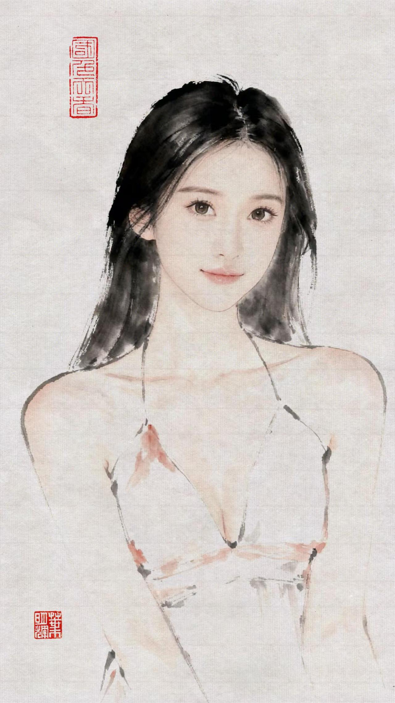 水墨佳人。国画美女写生国画人物画手绘画画