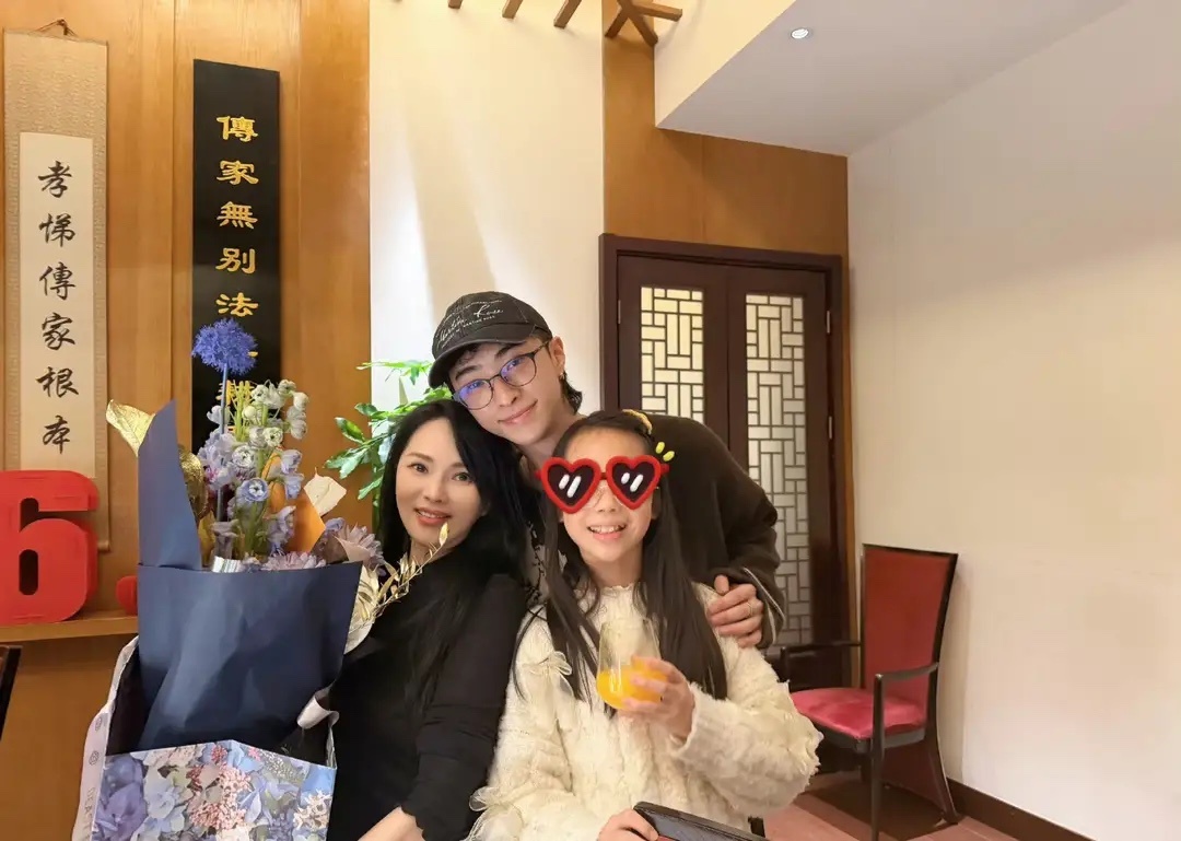 伊能静庆祝58岁生日,儿女同框很孝顺,儿子送花小米粒送小金子!
