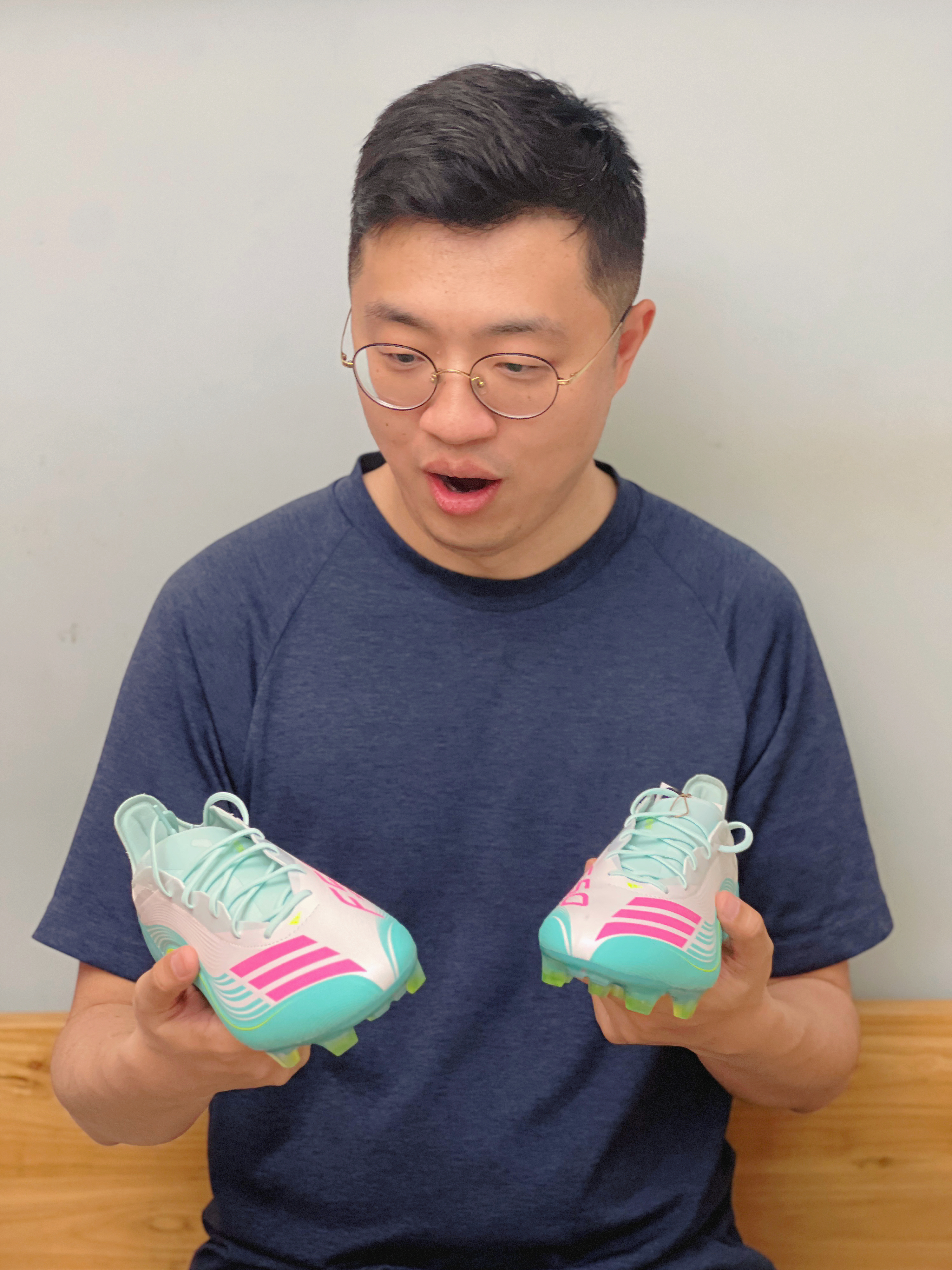 “流光溢彩”配色,青绿色显得很有活力,搭配粉色三条纹,辨识度拉满。穿上它,你就是球场最靓的仔
