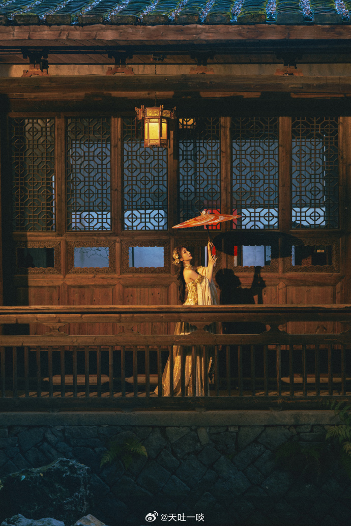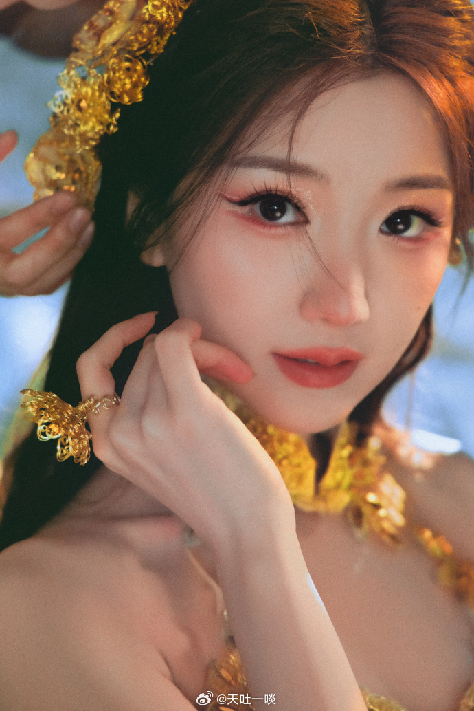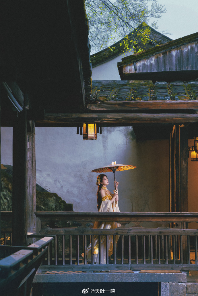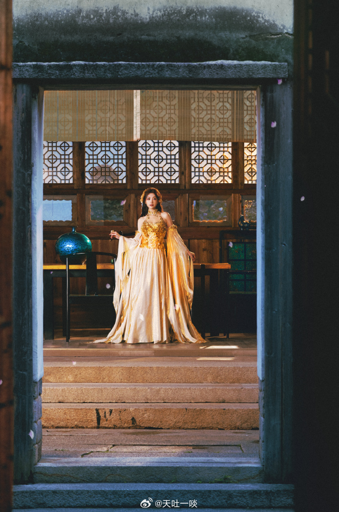 鎏金刺绣纱裙、持伞起舞灵动贵气——毛晓彤。每日明星美图分享