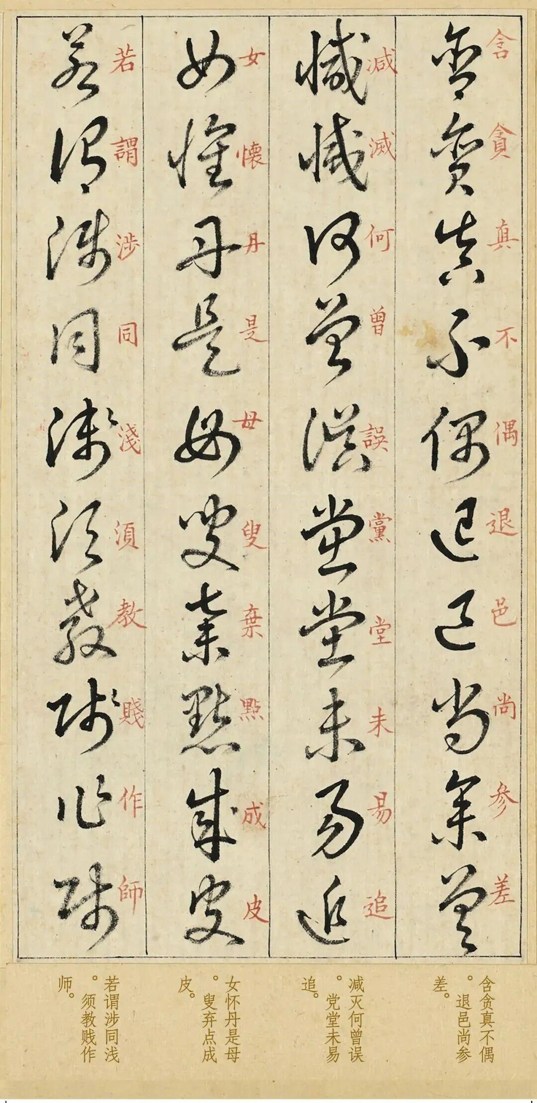 王羲之禁止外传的106句口诀!揭露草书所有技巧,小白也能轻松看懂 学习草书,比掌握行书和楷书,还要多一个步骤,那就是识读和明晰结构,行楷的字型和笔画意态,相对清晰一些,无需特意学习便能识得,草书与它们不同,它重在自如、奔放,笔画极为简洁,形态如同画符。 若非知晓组成结构,或固定的变化模式等,基本识读都是难题,因此初学草书,别再苦练《十七帖》《书谱》等作品了,它们主要展现草法,技艺深奥,并不适合当代的初学者。 实际上,近几年书坛风靡一部《草诀百韵歌》,内容言简意赅,直切要点,把草书所有的基础知识,以及古人草法和风貌等技巧,全部展现清楚,而且难度低,新手小白也能轻松看懂,非常适合入门,现在我们详细欣赏一下。 宋朝时期,曾有高人总结王羲之偷偷传给儿子,且叮嘱禁止外传的草书秘法,并将其写成五言歌诀,最初歌诀并不完善,随着慢慢传世,书法学者将其补全,造就全卷106韵口诀。 这些五言歌诀朗朗上口,易于背诵,主要讲解草书的难点、易错点,以及字体构成方式,每个草书旁边,还有小楷注释,方便大家识读、学习,就拿这句“思惠鱼如画,禾乎手似年”举例。 草书笔画简省,时常出现相近的形态或字体,我们要知晓,并懂得通过细节区分,就像上述的“思、惠、鱼”这3字,只看外型跟“画”字十分相近,仅有用笔转折徐疾等细微之处,有所差别。 “禾、乎、手”也是如此,跟“年”字类似,至于这句“左阜贝丁反,右刀寸点弯”,主要分析草书简化写法,“左阜” 就是左耳旁,它跟贝字旁、丁字旁,作为左偏旁时,需要反过来写。 “右刀”是右刀旁,它跟寸字旁作为右偏旁时,写法变作一点,或者下加横折钩或弯笔,经过这样的分析,我们在学习草书时,便会理解的更加深刻,书写自然流畅,真正入门,打牢基础。 况且卷内草字,皆是选自王羲之的传世法帖,揭露正统草法,尤其这幅范本,乃是台北故宫的墨迹,没有漫漶和反白处理,字字完整、清晰,非常适合临学,掌握理论,同时初步领会古法。 而今,我们对王羲之《草诀百韵歌》,进行1:1超高清复刻,推出便携经折装,加入现代字注释,帮助初学者识读,非常适合临摹与欣赏,与原作毫无二致,见此品如见原作,市面罕见,独此一家,若您喜欢可点击下方商品链接一观。 王羲之草诀百韵歌 台博藏本精装版高清复刻装饰字画