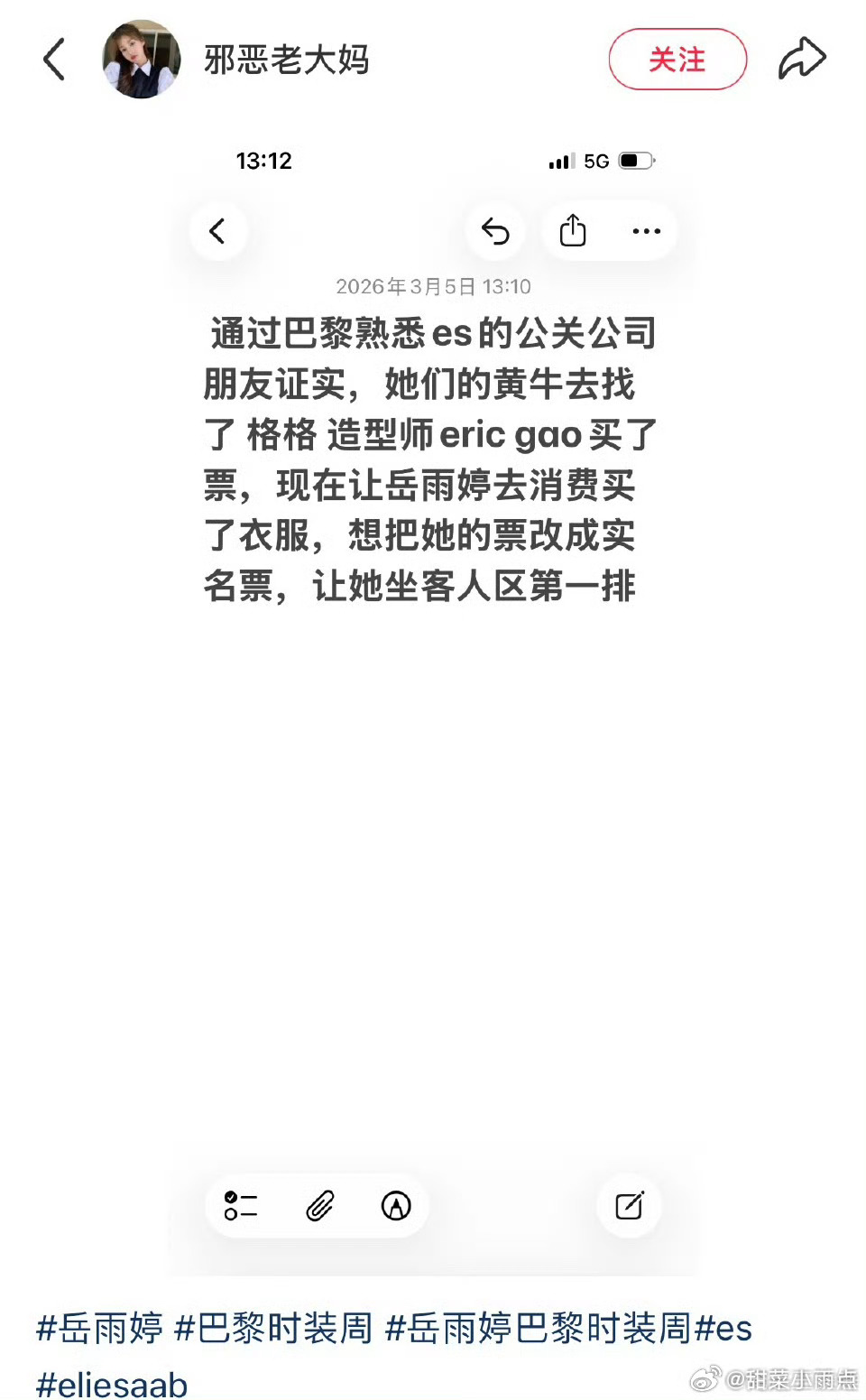 岳雨婷心态心态能不好吗?秀场都没进去🍠都已经发三条了,热搜各种yx最后没被品牌方认领,还被网友爆料是自己买的…内娱明星都没丢过这么大的人,给短国丢上人了