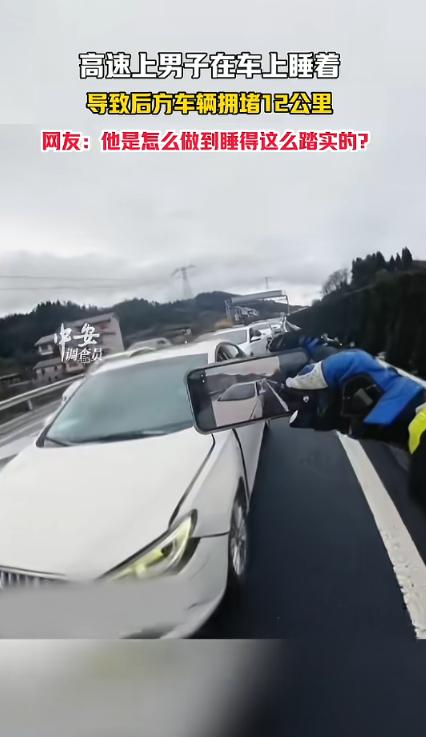 “心真大!”2月23日,湖南怀化,一男子开车上高速,因为太困,竟直接停车开始睡觉,后面的车不知道什么情况,只能等候,短短40分钟,就堵出了12公里,数千辆车因此耽搁,还是交警上前将男子叫醒,他才知道发生了什么!网友:睡得真香! 谁能想到?一次高速大堵,居然是因为一个大哥在车道上“补觉”。 这事儿听着像段子,却是实打实发生在高速上的真事,而且堵得离谱,短短几十分钟,直接堵出了十几公里,上千辆车被耗在半路。 这条连接东西的主干高速,平时车流量就不小,事发那天更是堵得水泄不通。 不管是私家车还是货车,一辆挨着一辆,慢慢往前挪,不少车主都在车里唉声叹气——有的急着赶回去上班,有的带着老人孩子,想早点到家休息。 一开始,后面的车主都没当回事,毕竟节后返程堵是常态,大家都耐着性子耗着。 有人把座椅放倒一点,靠在上面刷手机;有人跟同车的人唠嗑,吐槽返程的糟心;还有人拿出提前准备的零食,一边吃一边等,想着顶多堵个一小会儿。 渐渐地,原本只有几百米的拥堵路段,一点点往后面蔓延,越堵越长。 有性子急的车主,摇下车窗往前瞅,可放眼望去,全是密密麻麻的车屁股,连最前面的车影都看不清,更不知道到底发生了啥。 有人按了两下喇叭,希望前面的车能有反应,结果这一按,周围的车主也跟着按,喇叭声此起彼伏,混着发动机的嗡嗡声,整个高速上吵得不行,可前面的车依旧纹丝不动。 一些司机见状干脆熄了火,走到路边,跟其他司机凑在一起抽烟,你一言我一语地猜测前面的情况。 “是不是出什么事故了?不然不能堵这么久” “说不定是修路” “别是有车抛锚了,没人管吧?” 时间一分一秒地过,从最开始的十几分钟,到半个小时,再到整整四十分钟,拥堵的长度已经涨到了12公里,上千辆车被堵在这条高速上,寸步难行。 而造成堵车的那位司机,还在睡梦中呢。 在车里睡着的那个男子由于又着急返程,没休息好就匆匆上了路,再加上当时已经连续开了好几个多小时的车。 高速路面平坦,两边的风景也没什么变化,长时间盯着前方,困意一下子就涌了上来。 他也没多想,觉得反正自己就眯一小会儿,应该没事,于是就把车停在了行车道中间,往上面一靠,倒头就睡,瞬间就进入了梦乡。 他睡得有多沉?后面那么多喇叭声,周围那么吵,他一点反应都没有,脑袋歪在座椅上,呼吸均匀。 后面堵着的有些车主实在等不及,就打了报警电话,说这段高速堵得特别厉害,不知道是什么原因,希望交警能过来看看。 交警接到电话后,立马赶了过来。 随后交警一边拍着男子车的车窗,一边大声呼喊。 “师傅,醒醒!醒醒!这里不能停车!” 在不断地呼喊下,那个男子才慢悠悠地醒了过来。 男子原本还有些迷糊,但交警指了指他身后长长的车流,男子一下子就彻底清醒过来,脸上的迷茫瞬间变成了惊讶,紧接着又露出了愧疚的神色,连忙道歉。 交警也没有过多指责他,只是让他赶紧把车挪到应急车道,然后对他的违法行为进行了相应的处理。 男子连连点头,赶紧发动车子,把车挪到了应急车道,然后下车配合交警做笔录、接受处罚。 与此同时,慢慢的,原本纹丝不动的车流,开始一点点往前挪动。 堵在后面的车主们,看到这种情况,也终于松了一口气,纷纷发动车子,跟着前面的车慢慢往前走。 高速上疲劳驾驶的情况,真的不算少见,尤其是在长途驾驶或者返程高峰的时候,长时间开车,精神一直高度集中,很容易产生困意。 但疲劳驾驶的危害,真的不容忽视。 返程的终点是家,是团圆,而不是危险和麻烦。 多一份细心,多一份谨慎,累了就去服务区休息,不疲劳驾驶,不随意停车,既能保护自己,也能不耽误别人,这样才能让每一次出行,都能平安顺利。 (信息来源:中安在线《高速上男子在车上睡着,导致后方车辆拥堵12公里,网友:他是怎么做到睡得这么踏实的?》)