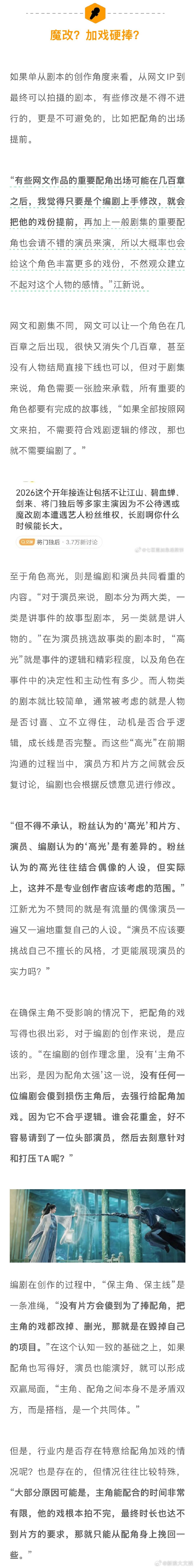 业内否认为捧配角删主角高光 内娱真的存在阴阳剧本吗 谈及“用A剧本把演员骗进来,但现场却拍摄B剧本的‘阴阳剧本’”等情况,得到的答案几乎都是否定的。因为在开机之前,演员至少可以看到50%~60%不会有大改动的剧本。“对于核心主演而言,经纪团队签合同时,会明确规定对人物的成长塑造、剧本的事件走向等不可以有颠覆性的修改。”在此约定之下,形成“阴阳剧本”可能性是比较小的。娱理独家↓