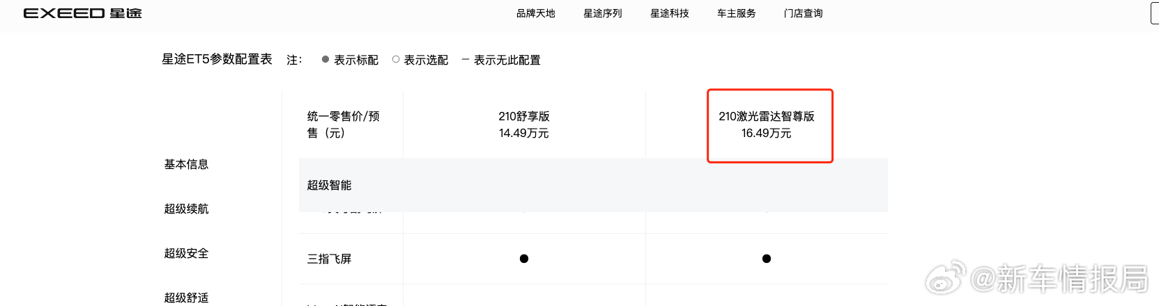 星途ET5官宣涨价新车情报局 日前,我们从星途汽车官方获悉,旗下中型SUV——星途ET5上调指导价,210激光雷达智尊版车型上调5000元。调整后,该版本官方指导价为16.49万元,目前官方已经能看到调整后价格。