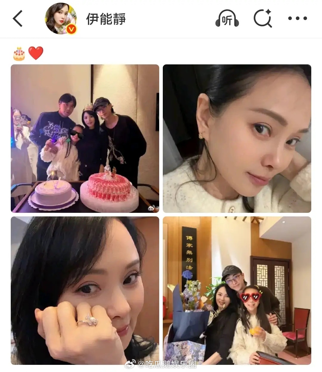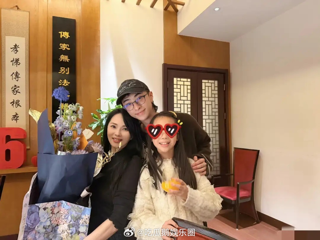 伊能静58岁生日晒全家福,恩利送花秦昊送戒指,米粒送金子最实在!