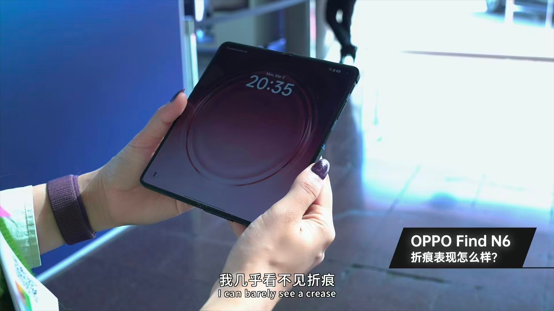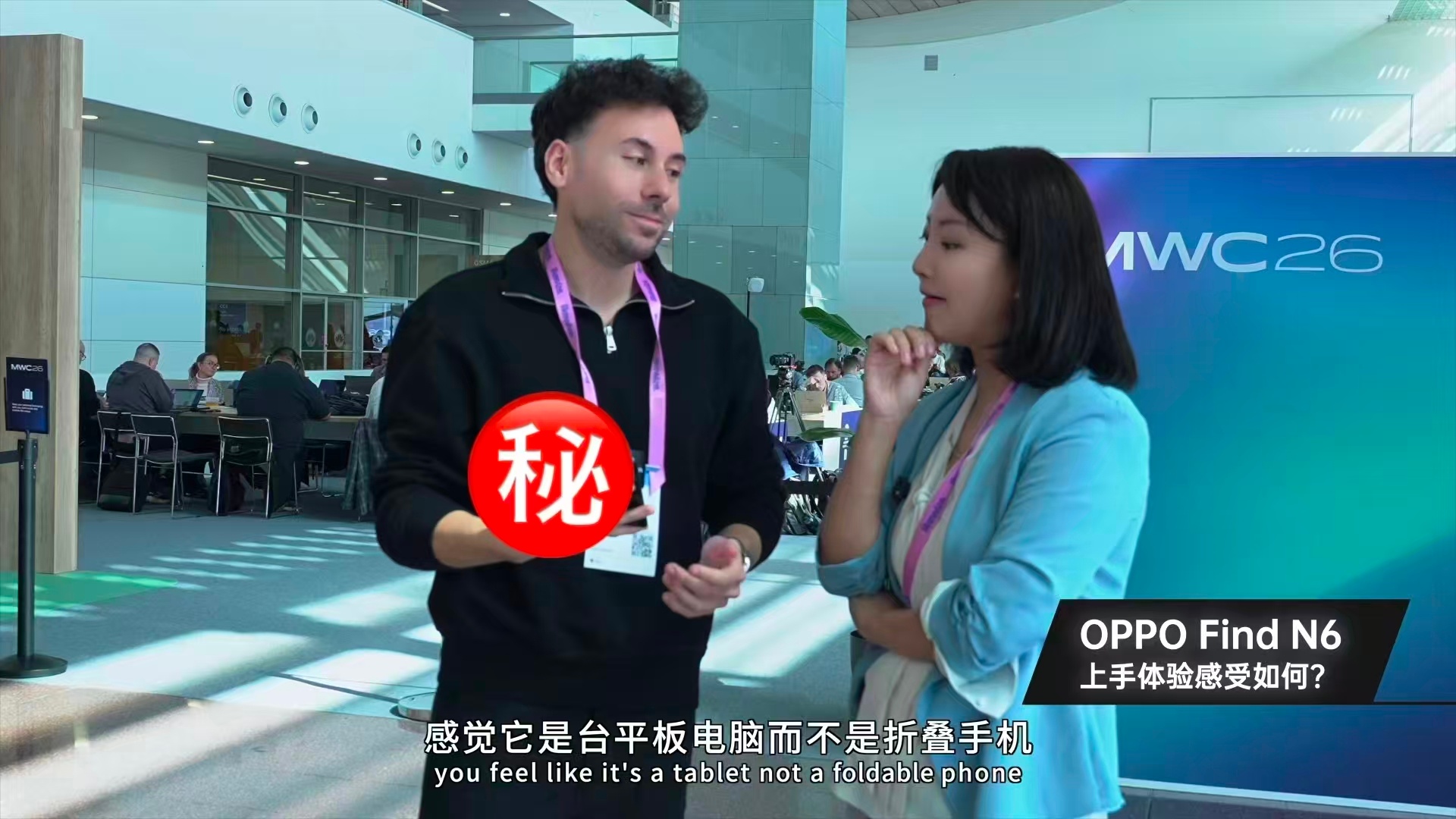 这次Find N6真机亮相MWC 世界移动通信大会现场,简直惊艳了全场媒体,也收获了海外专业科技媒体们纷纷点赞。看了王冰汝拿着真机,给外媒上手体验的采访视频。有外媒表示:感觉它像平板电脑,而不是折叠手机。感觉很光滑,一点折痕都感觉不到。甚至在疯狂折叠后,依旧超平整。甚至有媒体爱不释手,直接问:能直接拿走这部手机吗?可以说N6简直是MWC上行走的社交货币。讲真,看到他们面对中国科技创新惊讶的样子,自豪感就油然而生。就像王冰汝说的那样,如今中国品牌已经从MWC的参与者,跃升为新技术创造者,而绿厂新机的推出,正是中国技术领先的一个很好的样本。