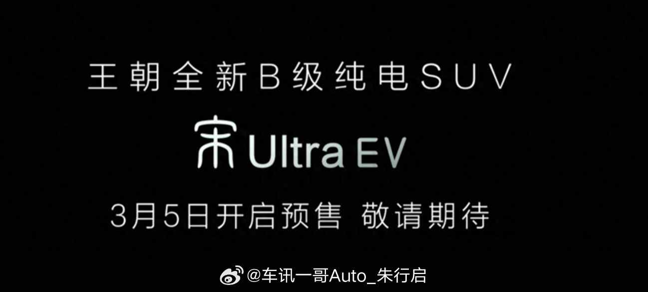 比亚迪宋Ultra EV将于3月5日开启预售。新车定位为王朝网全新纯电中型SUV,搭载高/低功率两种单电机,申报最高纯电续航里程为710公里。