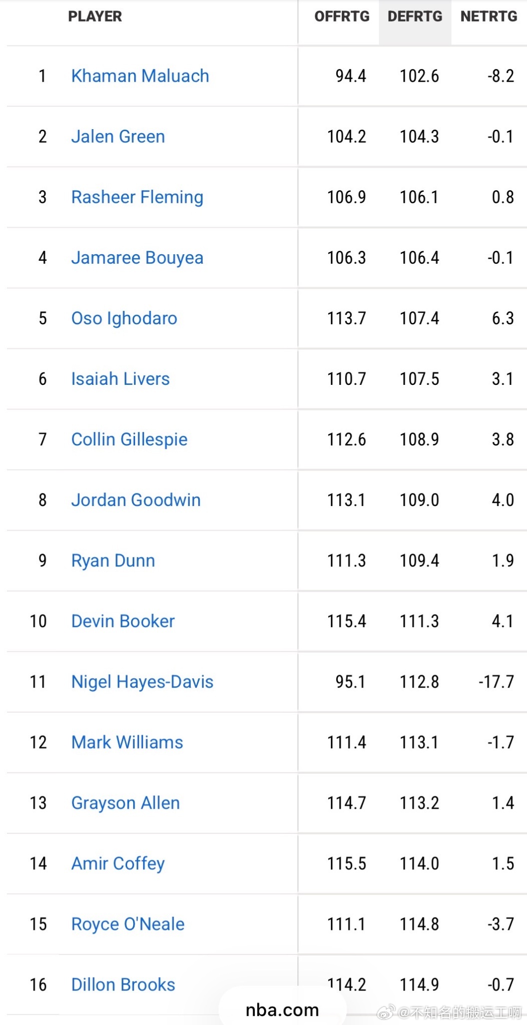 截至目前,杰伦格林是队内所有常规轮换球员中防守效率最高的球员,