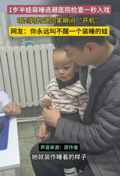 “永远叫不醒一个装睡的娃!”1月23日,河北廊坊,一对夫妻带宝宝去看病,没想到宝宝一进诊所室,就察觉到不对劲,开始倒在爸爸怀里直接装睡,怎么叫都不睁眼,差点把所有人骗过去,直到妈妈说回家,宝宝才睁眼和医生拜拜。网友:小小年纪就是“影帝”。 孩子的心思单纯又直白,面对陌生的诊疗环境、穿着白大褂的医护人员,总会生出本能的抵触情绪,哭闹、躲闪、往家长怀里钻都是常有的模样。 可最近一段发生在诊所里的真实视频,却让全网家长看到了人类幼崽别出心裁的 “避险方式”。 没有哭闹撒泼,全靠一身逼真演技,把在场所有人都逗得忍俊不禁。 当天,诊所里依旧是日常的忙碌模样,一对夫妻抱着自家小宝宝走进诊所,准备给孩子做常规的身体检查,出发前夫妻俩还轻声安抚着孩子。 还没走进诊室的时候,小宝宝被爸爸抱在怀里,状态一直格外放松,小脑袋时不时转来转去,好奇地打量着诊所里的一切。 看着身边其他小朋友的模样,小手还轻轻揪着爸爸的衣领,模样软萌又乖巧,丝毫没有抗拒的样子。 可当爸爸抱着他跨过诊室门槛,近距离看到穿着白大褂的医生,小家伙直接就敏锐地察觉到眼前的环境,正是自己最不想面对的看病场景。 没有丝毫犹豫,也没有像其他孩子一样哭闹挣扎,小宝宝当下就做出了一个让所有人都意外的反应。 他顺势往爸爸的怀里深深一靠,双眼 “唰” 地一下紧紧闭起,连一丝眼缝都不留。 小嘴巴轻轻抿着,原本灵活的小身子也瞬间放松下来,刻意放缓了呼吸的节奏,一秒钟就切换成了 “深度熟睡” 的状态。 仿佛前一秒还好奇张望的小家伙,下一秒就被突如其来的睡意彻底包裹。 抱着孩子的爸爸最先反应过来,先是愣了几秒,随即就明白了孩子的小心思,忍不住笑出了声。 爸爸试着轻轻拍了拍孩子的后背,又轻声呼唤着宝宝,想让他睁开眼睛。 旁边的妈妈也凑了过来,看着孩子一本正经装睡的模样,又好笑又无奈。 妈妈伸手轻轻碰了碰宝宝的小手,又拿出随身带着的小玩具,在孩子耳边轻轻晃动,试图用孩子平时最喜欢的东西吸引他睁眼。 可小家伙依旧不为所动,全程保持着熟睡的姿态,小眉头却微微蹙着。 坐在诊疗桌前的医生,也被这突如其来的一幕逗乐了。 从医多年,医生见过无数害怕看病检查的孩子,有的孩子一进门就大哭不止,有的孩子紧紧抱住家长不肯松手,有的孩子看到医生就拼命躲闪,可这般干脆利落选择装睡逃避的孩子,还是头一次遇到。 爸爸妈妈强忍着笑意,配合着医生完成检查,医生也全程温柔操作,动作轻缓又耐心,生怕惊扰了这位 “熟睡” 的小演员。 而整个事件最精彩的反转,就出现在检查即将结束的时候。 妈妈看着孩子装睡装得格外认真,不忍心拆穿,又觉得好笑,便故意放轻了声音,对着怀里的宝宝轻声说了一句:“我们收拾东西准备回家咯。” 就是这样一句再普通不过的话,瞬间打破了宝宝维持许久的 “熟睡” 状态,猛地一下睁开了双眼。 确认检查真的结束、可以回家之后,脸上瞬间露出了轻松的神情,还主动抬起小手,对着医生挥了挥,乖乖地说了拜拜。 这段视频被家长分享到网上之后,很快就吸引了大批网友的关注,大家都被小宝宝这波教科书级别的装睡操作圈粉,评论区里满是轻松搞笑的留言。 网友们纷纷调侃:“这孩子,让我想来了那句话,永远叫不醒一个装睡的娃!” 还有网友说:“这波战术性装睡,把 “眼不见为净” 的道理拿捏得死死的。” 人类幼崽的世界永远简单又纯粹,喜欢就开怀大笑,害怕就悄悄躲避,用自己独有的方式探索世界、表达情绪。 而那些看似调皮的小举动、天真的小机灵,都是成长路上最珍贵的印记。 (信息来源:西藏商报《一岁半的小朋友有八百个心眼子,看到白大褂医生就装睡,听到"好了”立马举手"拜拜”。》)