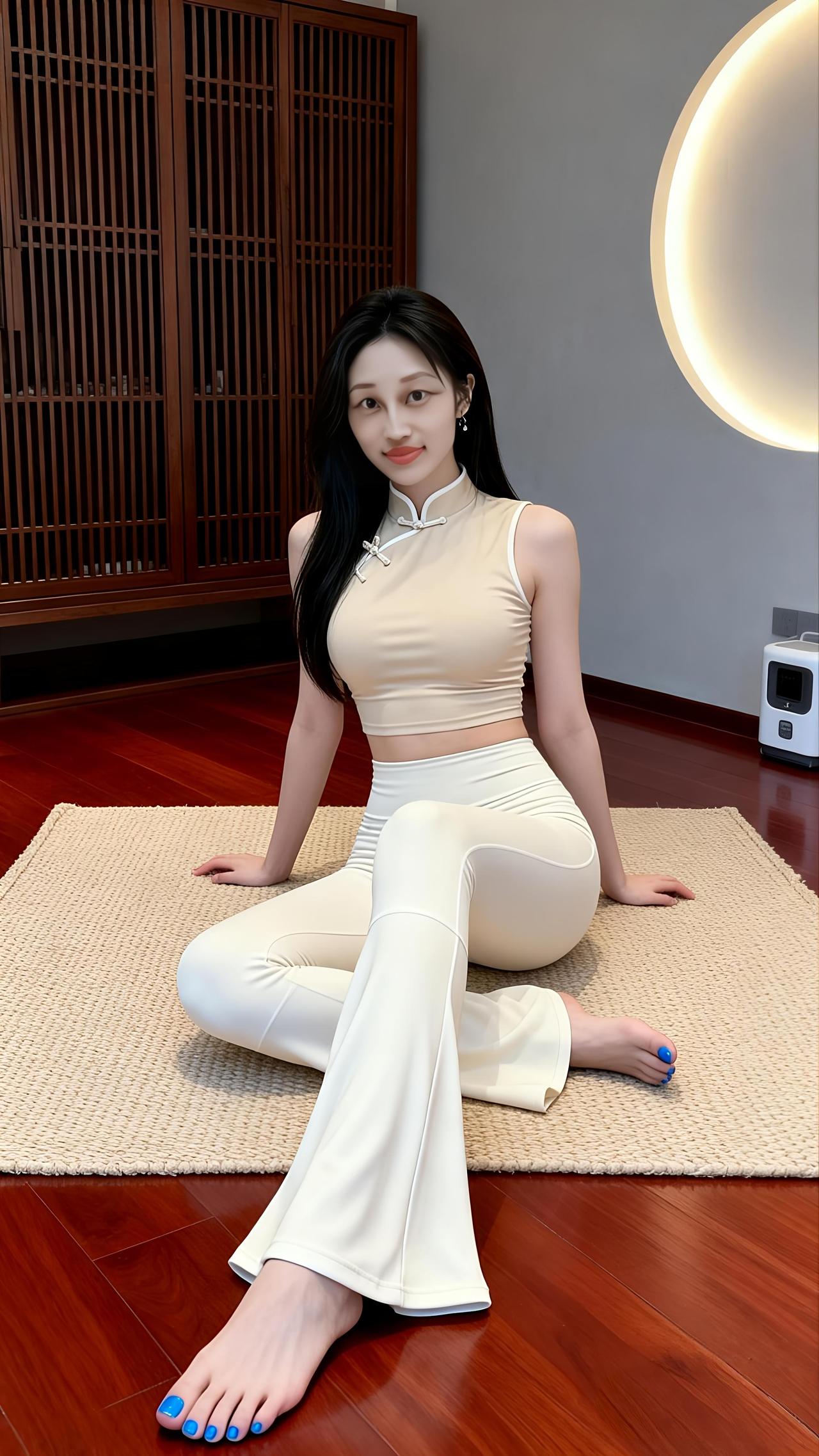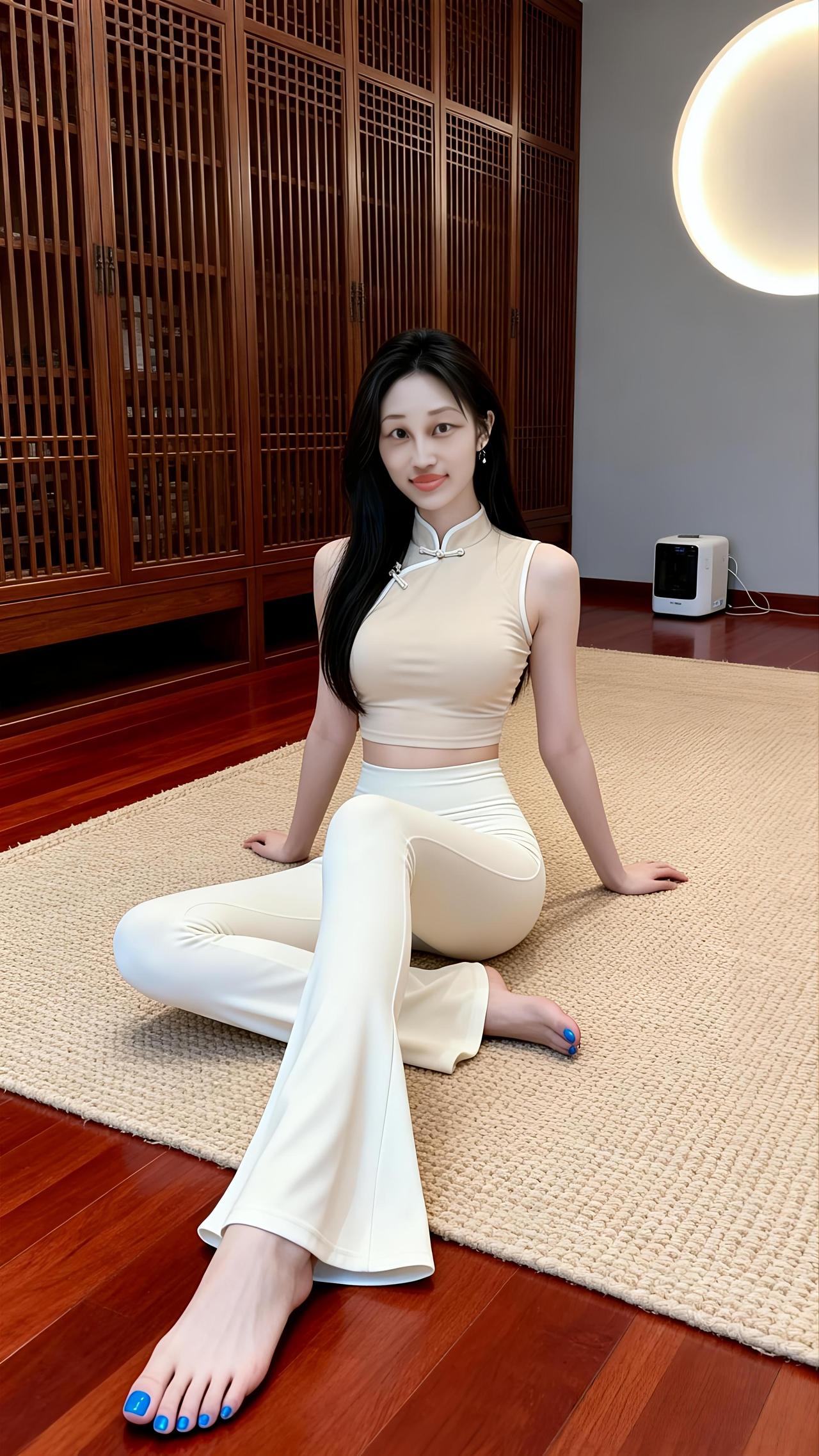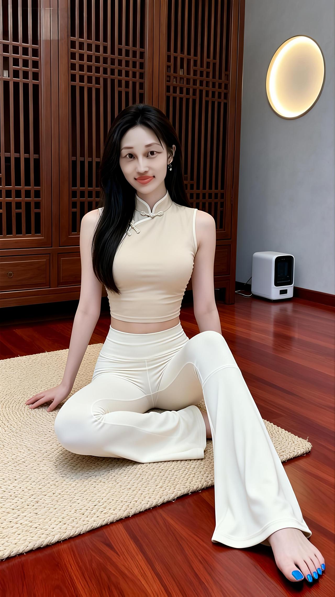 优雅气质穿搭,米色旗袍与白色裤装搭配,尽显东方韵味!