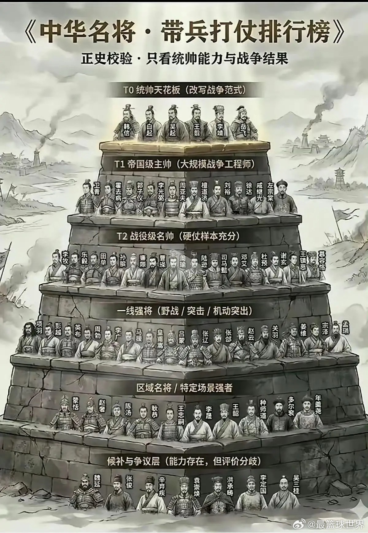 网友弄的中华名将带兵打仗排行榜。你认可吗?