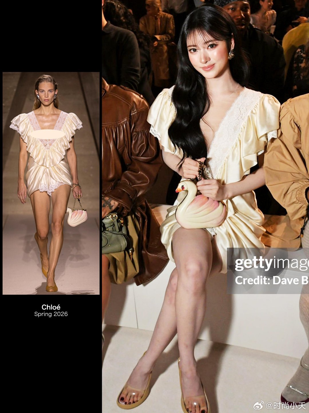 Anna巴黎看秀生图,杏奈大小姐也太美了!巴黎时装周时装周普通人怎么看时装周Meovv成员Anna田中杏奈第二次亮相Chloé大秀,身穿2026春夏系列,白晰到发光的肌肤几乎跟裙子融合了,完全就是大小姐风范。