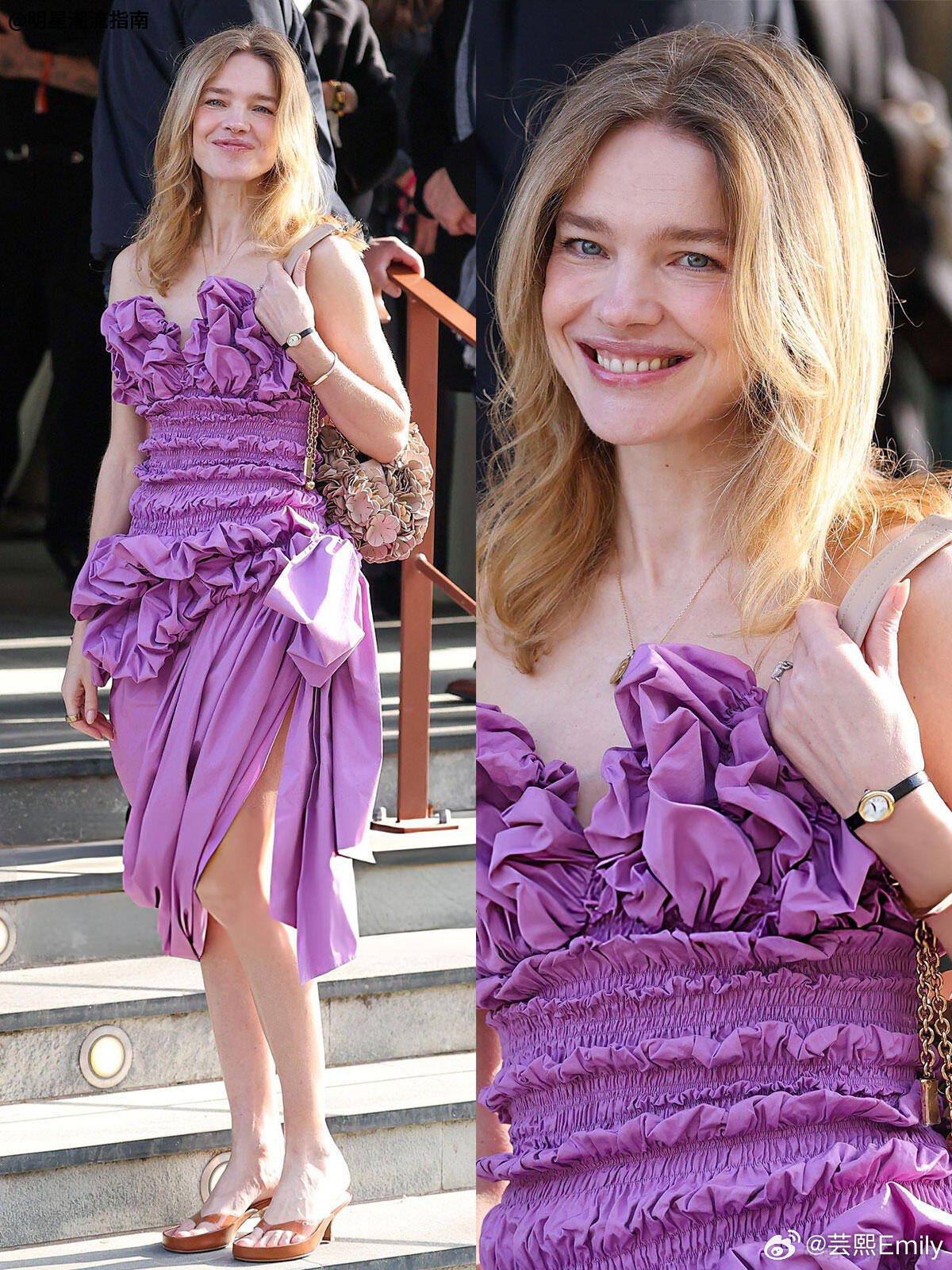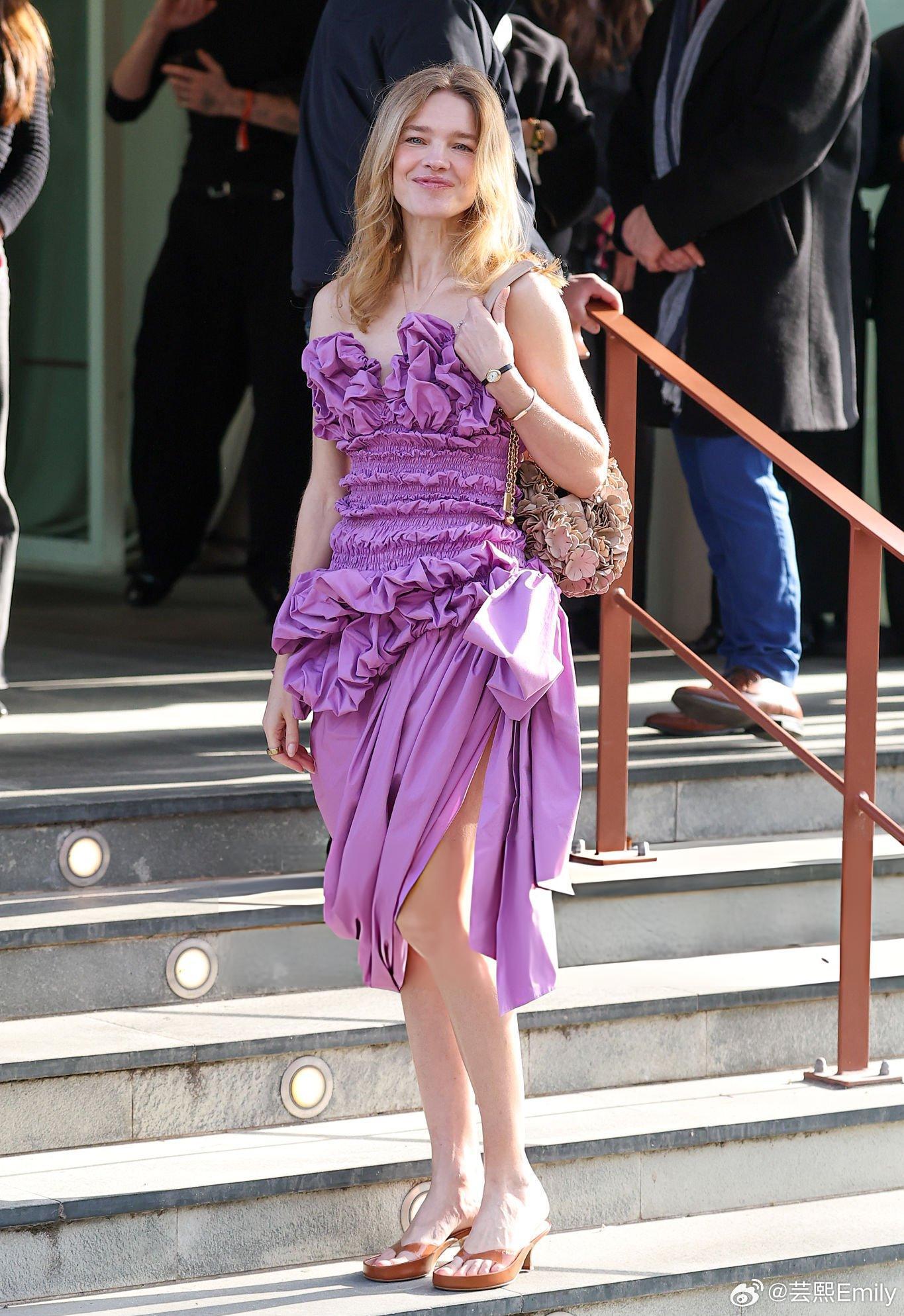 时装周巴黎时装周 44岁LV太子妃Chloé看秀,美成洋娃娃了今日,LV太子妃-娜塔丽·沃佳诺娃(Natalia Vodianova)出席巴黎时装周 Chloé 2026秋冬大秀,生图下的她真的美成洋娃娃了!今年水果娜44岁了,仍然是超模界“花期超长待机”的女神!这身紫色花苞裙,真的很适合她,美得优雅不费力~
