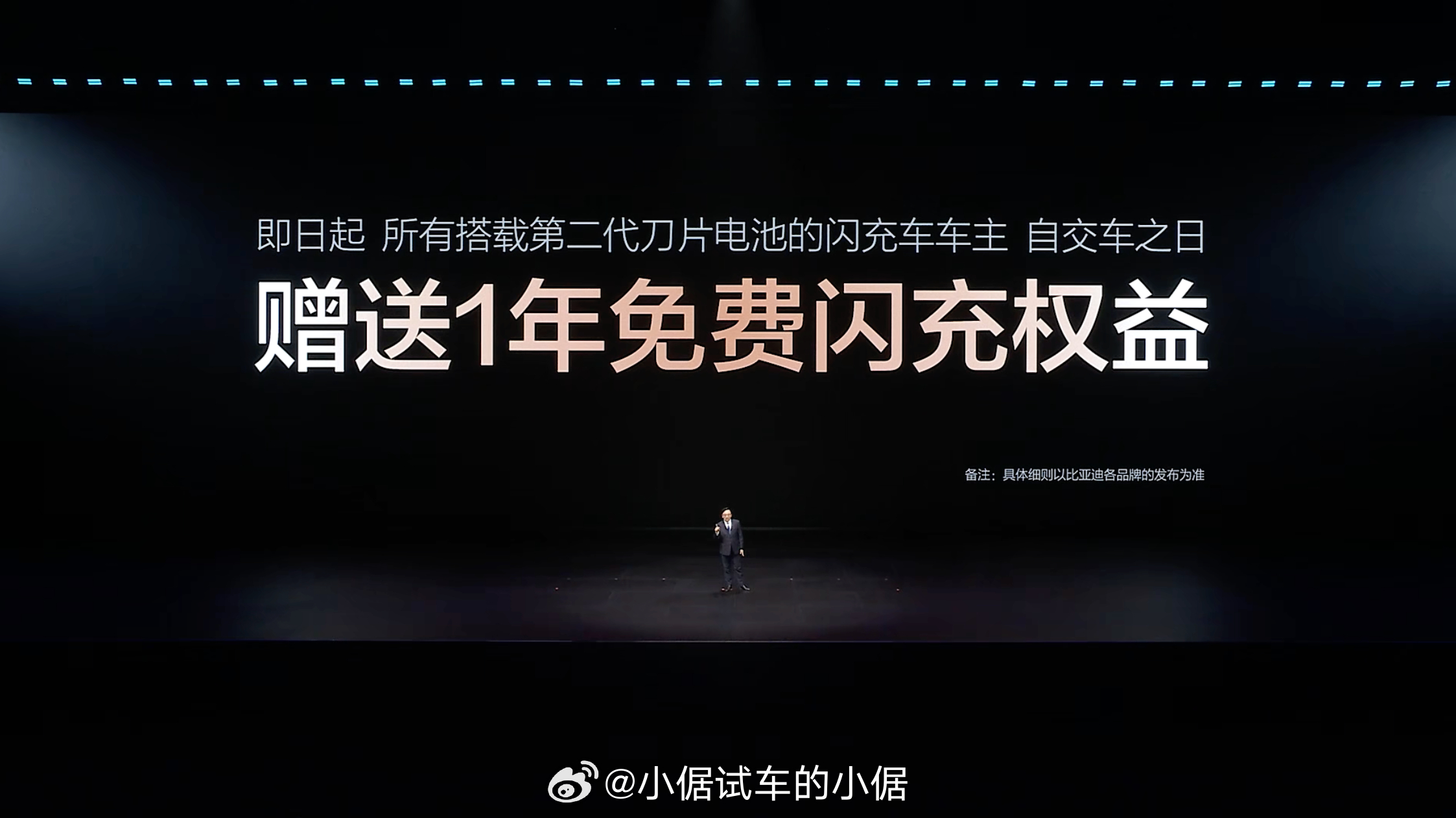 给所有搭载第二代刀片电池的闪充车车主,赠送1年免费闪充权益,这个太好了!