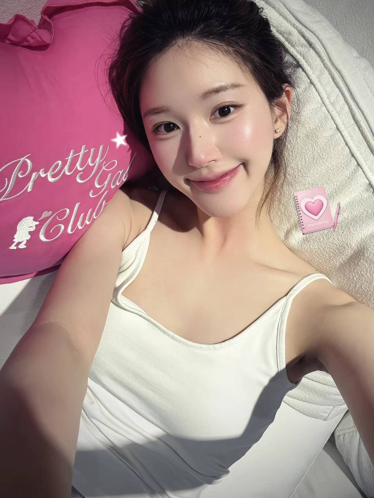 阳光下的甜美少女,在湖边微笑自拍,笑容比波光还要闪耀。美少女的微笑自然美少女自