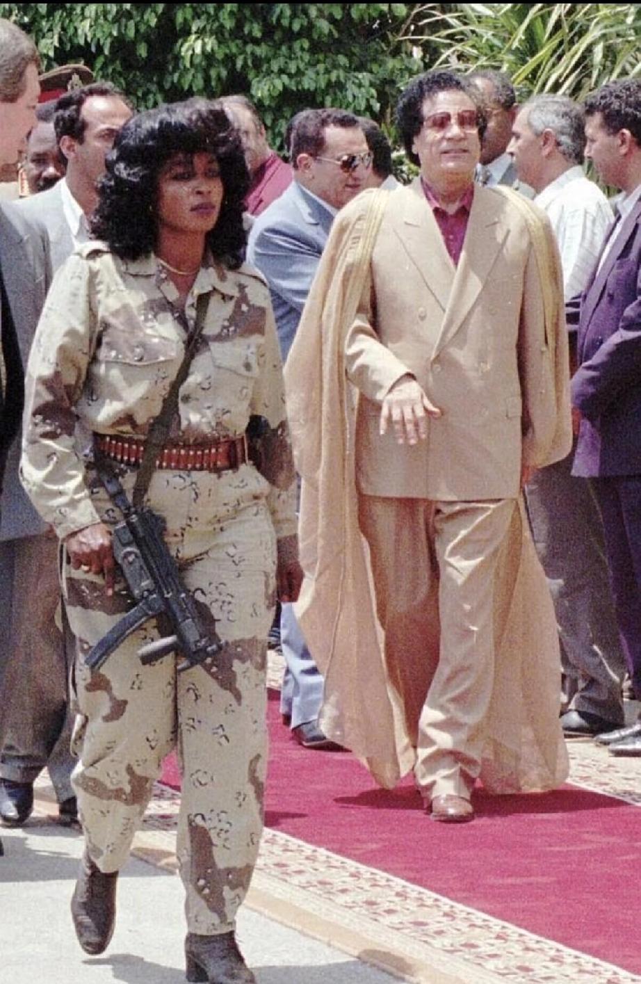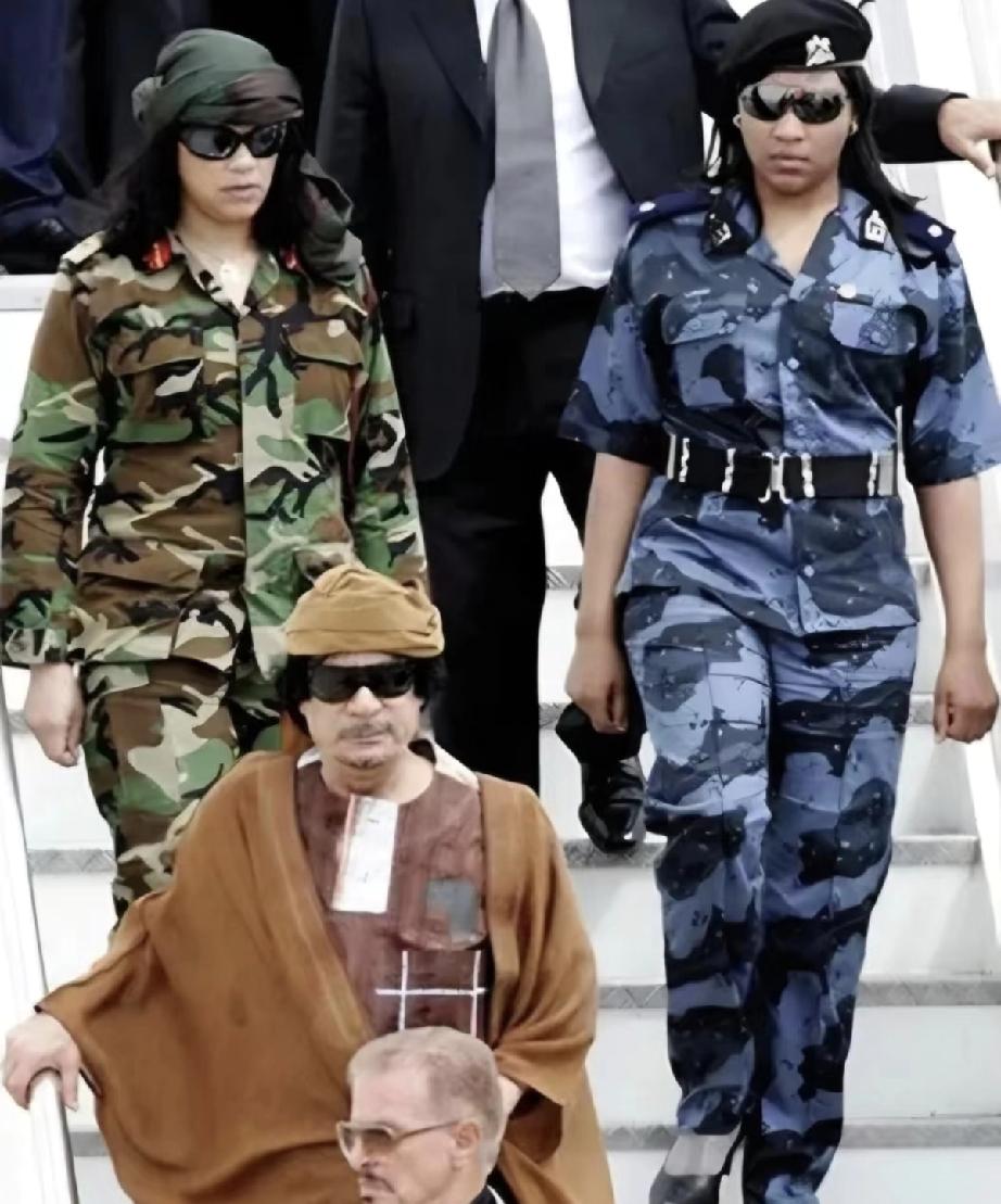 卡扎菲戎装在身,昂首挺胸,意气风发,是个美男子。 卡扎菲坐在众多美女中间,穿着休闲,仰头眯眼,目空一切。 谁说英雄爱美人?哥拽起来谁都不爱。 墨镜一戴,有女兵来炸街;大摇又大摆。 这是属于卡扎菲的高光时刻。