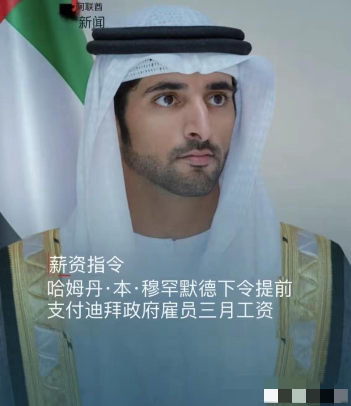 有钱就不用说了,问题是人家有钱还大方! 阿联酋新闻:谢赫.哈姆丹.本·穆罕默德殿下已下令于3月17日(斋月开斋节前夕)向迪拜政府雇员发放 3 月份的薪资。此举旨在使雇员及其家人能够充分享受这一节日盛事。 40岁的阿卜杜拉在迪拜教育局做基层行政工作,妻子全职照顾两个年幼的孩子,全家开销全靠他每月薪资支撑。 开斋节是当地最隆重的节日,按传统要置办特色餐食、给孩子买新衣物、走亲访友互赠礼品,这些支出都要提前规划。 他原本要等到三月底才能领薪,节前资金周转一直让他发愁,通知发布的当天,他对着手机屏幕反复确认,悬了半个月的心终于落定。 他立刻带着妻子去市场采购食材,孩子抱着新玩具蹦蹦跳跳,这个普通家庭的节日喜悦,因为一笔提前发放的薪资变得格外踏实。 谢赫·哈姆丹·本·穆罕默德身兼迪拜王储、阿联酋副总理兼国防部长,同时执掌迪拜行政委员会,所有决策都直接对接基层民生需求。 他不是第一次在重要节日前调整薪资发放时间,2023年开斋节,他就曾做出同样指令,让政府雇员安心筹备节日。这类举措从来不是临时造势,而是他长期走访基层、倾听普通职员诉求后形成的固定做法。 他经常不设安保、不打招呼走进政府办公点,和一线职员聊工作压力、聊家庭开销,提前发薪的想法,正是来自职员们随口提起的节前资金紧张。 迪拜政府雇员覆盖教育、医疗、市政、交通等所有公共服务领域,他们是城市日常运转的核心力量。当地早已建立完善的公职人员福利体系,包含足额薪资、免费家庭医疗、子女教育补贴、住房补助等多项保障,提前发薪只是这份关怀里最贴近生活的一项。 3月17日这个时间点经过精准测算,刚好卡在开斋节假期启动前两天,既能让雇员完成所有节日筹备,又不影响正常工作安排,每一个细节都透着对民众生活的体谅。 2026年迪拜开斋节假期确定为3月19日至22日,四天连休本就是全民期待的团圆时刻,提前到账的薪资,让这份团圆少了经济压力,多了从容欢喜。 很多地区的普通劳动者都会遇到节日前薪资延迟发放的问题,本该放松庆祝的时刻,却要为柴米油盐精打细算,这样的普遍困境,更让迪拜的做法显得格外暖心。谢赫·哈姆丹的决策从来不是追求财富炫耀,而是把执政重心放在解决普通人的实际难题上。 迪拜的城市标签向来是高楼林立、奢华地标,很少有人关注这些藏在日常里的民生细节。 王室掌握的财富没有被封闭在私人领域,而是持续转化为民众的生活保障与节日喜悦。阿卜杜拉这样的基层职员,不用为节日开销借贷,不用在家人面前掩饰窘迫,能体面地陪伴家人过节,这就是政策最实在的价值。 财富的真正意义,从来不是数字的堆砌,而是能为普通人撑起安稳的生活。谢赫·哈姆丹的一道指令,撬动的不是巨额资金,而是无数家庭的幸福感。 大方的本质不是随意撒钱,而是懂得把资源用在最能温暖人心的地方,懂得让每一个为城市付出的人,都能共享发展的红利。 城市的竞争力从来不只来自经济实力,更来自对普通人的尊重与守护。当掌权者愿意俯下身倾听基层诉求,愿意用实际行动为民众排忧解难,这样的治理才最有温度,这样的富有才最有价值。 各位读者你们怎么看?欢迎在评论区讨论。
