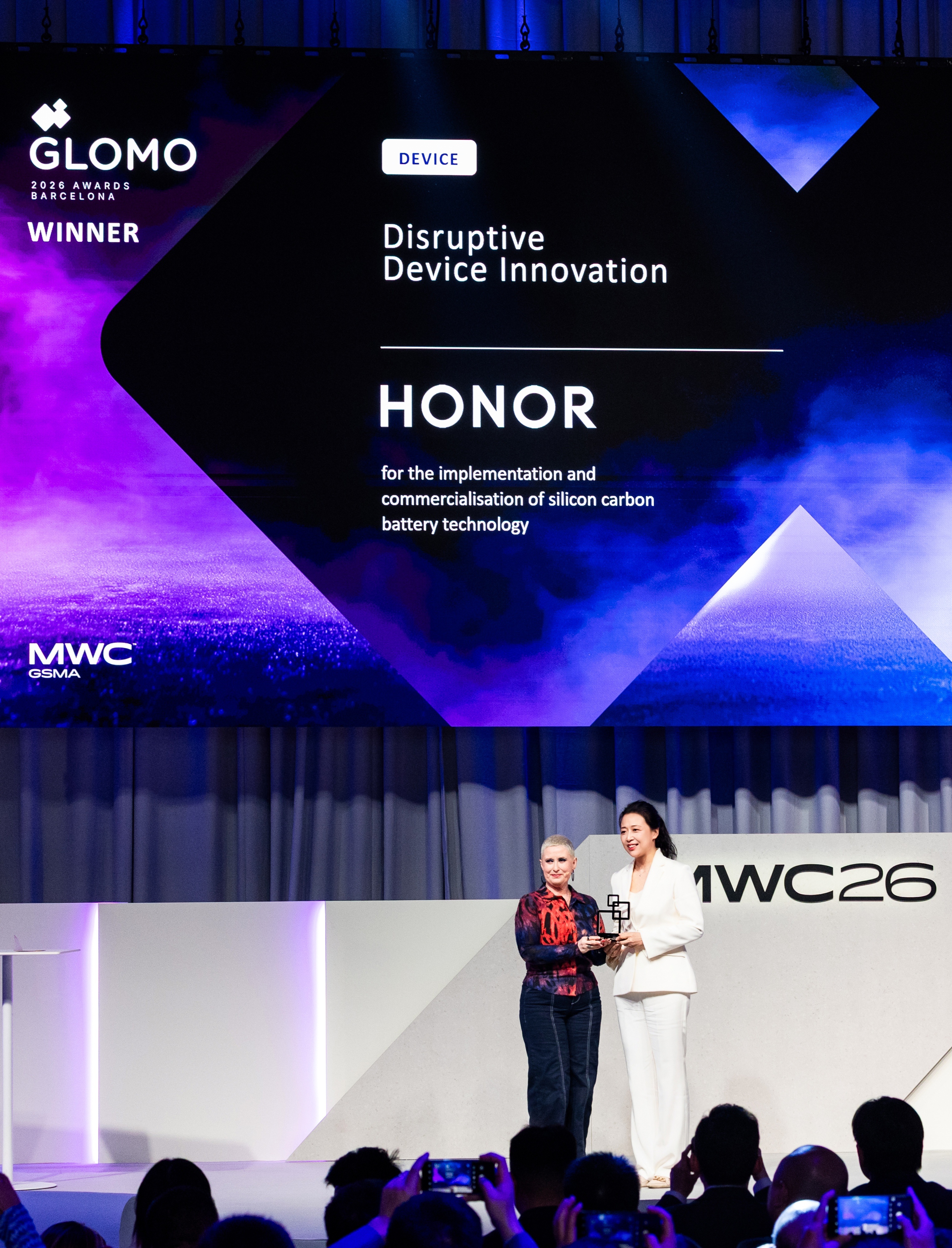 荣耀Magic V5牛啊,从Apple AirPods 3、Google Gemini、华为Mate XTs、Vivo Zeiss等入围产品中脱颖而出,斩获中国硅碳电池获GLOMO大奖!