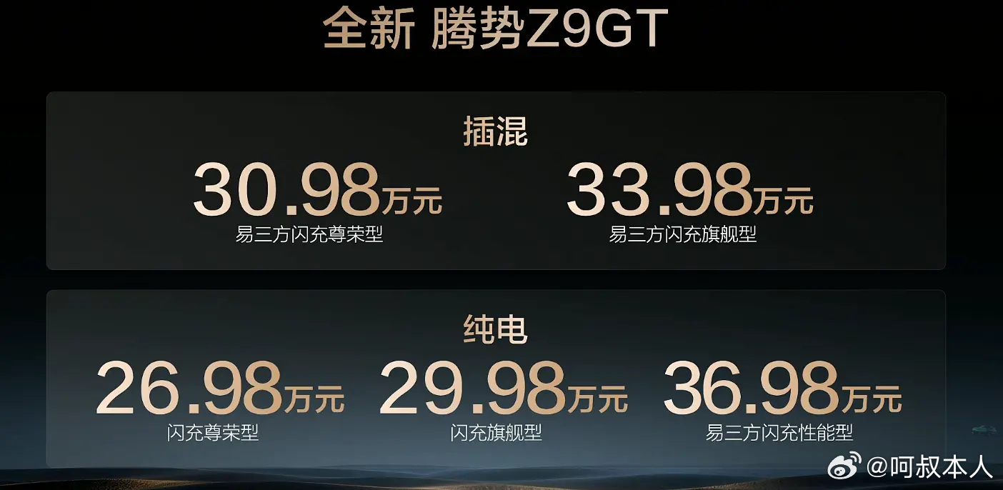 腾势Z9GT正式上市了!插混版30.98万起,纯电版26.98万起!第二代刀片电池+闪充,纯电续航最高1036km;易三方平台加持,零百2.7秒,还带智能漂移、后轮转向……这配置和价格,你觉得怎么样?比亚迪新车腾势z9gt