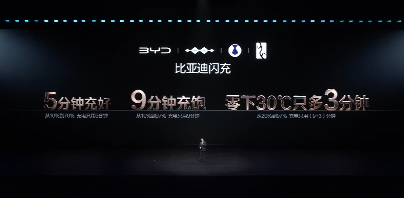 比亚迪闪充充饱只用9分钟比亚迪闪充零下30度12分钟充饱