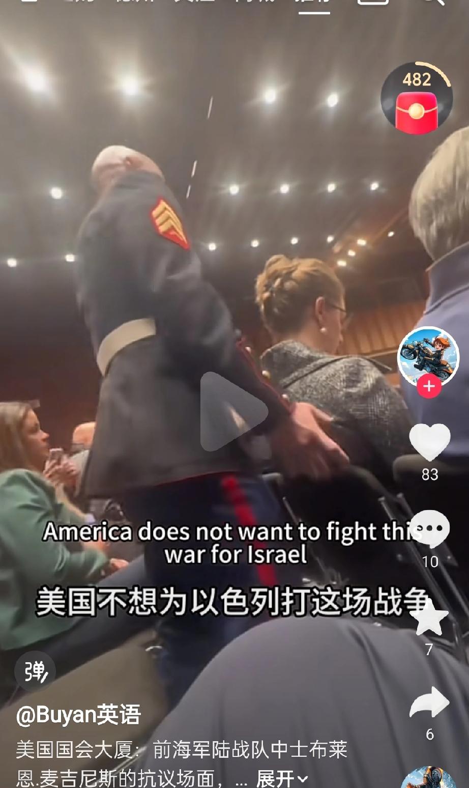 唉,这么有正义感的人不多了!!! 美国国会大厦前海军陆战队中士 在美国国会上谴责美国为以色列而战, 并且在与保安撕扯中把手臂弄折。