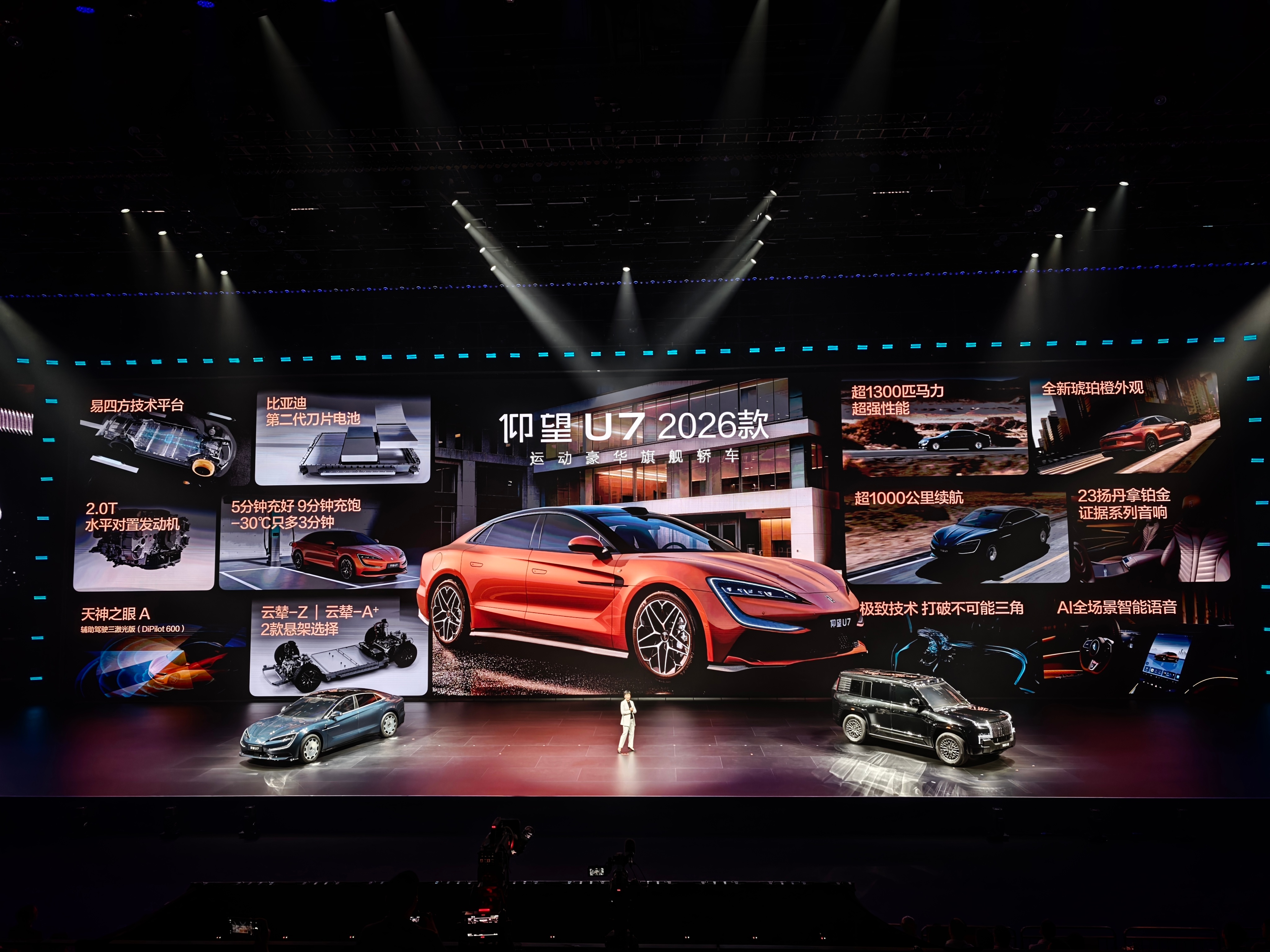 2026款仰望U7还有2.0T水平对置发动机,易四方,天神之眼A,一年免费充电没有限制价格65.8万起。比亚迪第二代刀片电池