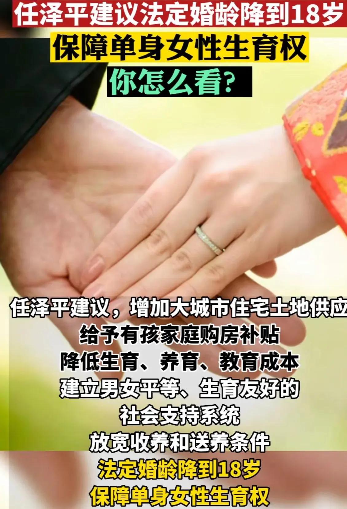 截至2026年3月5日22时20分,未检索到全国人大代表宋兆普在2026年全国两会上提出“适当降低法定结婚年龄,鼓励适龄群体早生早育”的权威报道 。 澄清与相关信息 1. 本人建议:据新京报、中国新闻网等权威媒体报道,宋兆普代表在2026年两会上的公开建议主要聚焦于修订中医药法、改革执业中医分科制度,以及建议年轻人23点前睡觉保护肝胆经等方面 。 2. 现行规定:我国《民法典》明确,法定结婚年龄为男不得早于22周岁,女不得早于20周岁。 3. 同类建议:近年确有多位代表委员关注此议题,例如2025年全国政协委员陈松蹊曾建议将法定婚龄调至18岁,以应对人口结构挑战 。 请以全国人大官方发布或主流媒体两会特别报道为准,避免不实信息传播。结婚年龄法案