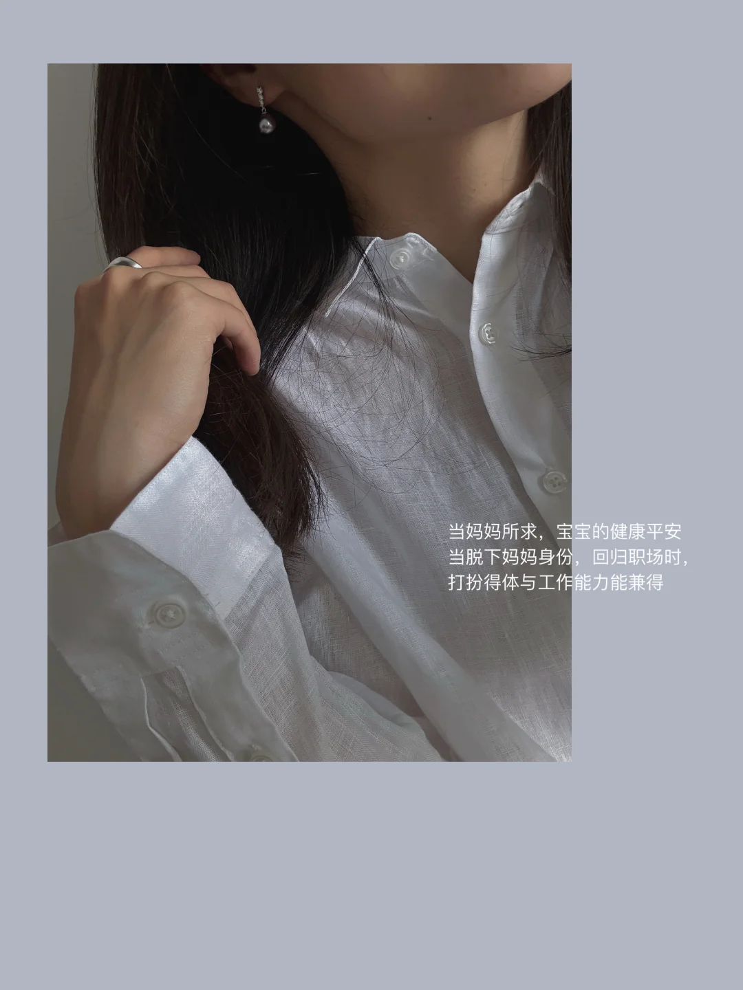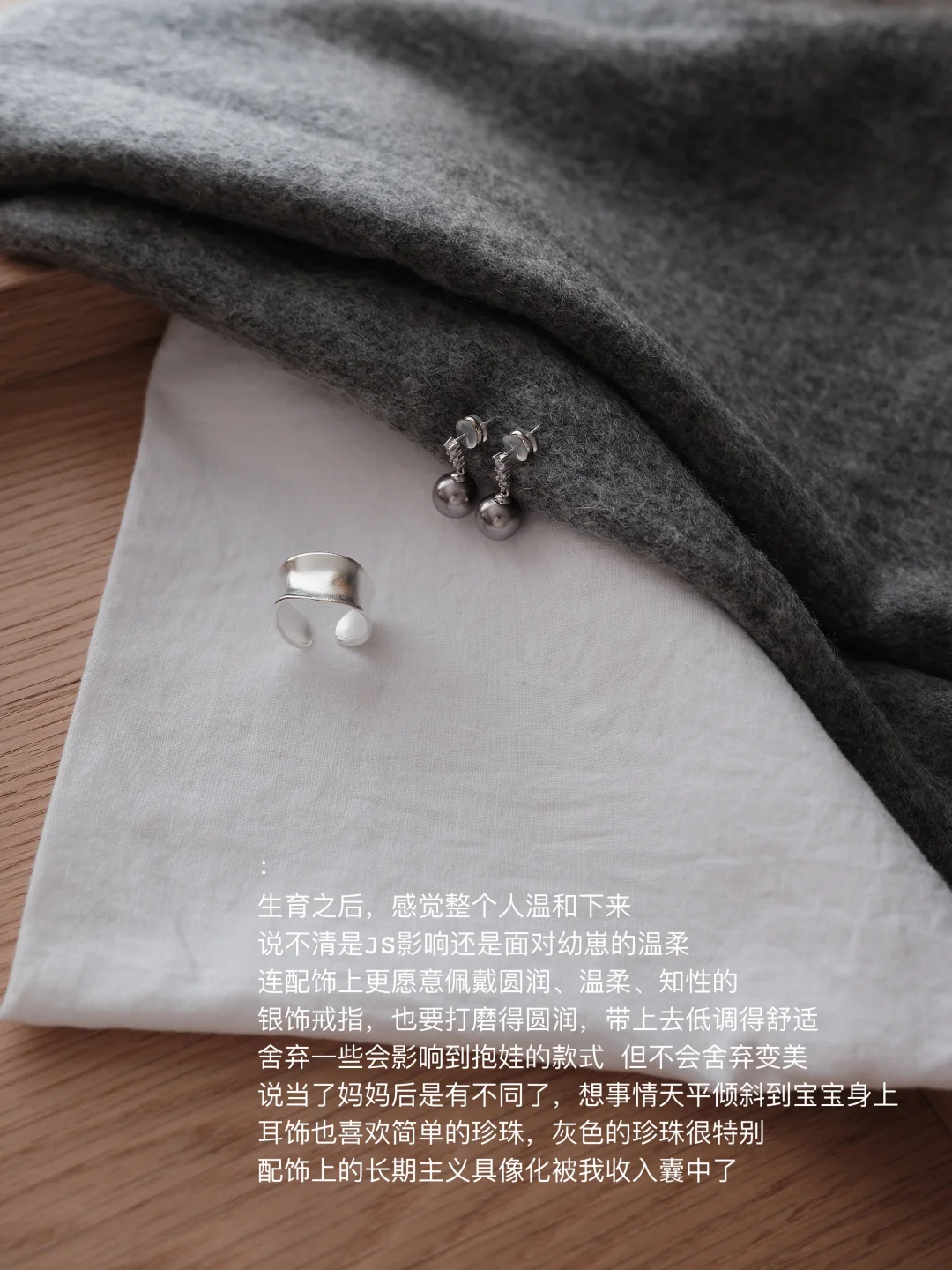 ❷珍珠耳饰:灰色更是独特,点缀整个基础款穿搭。