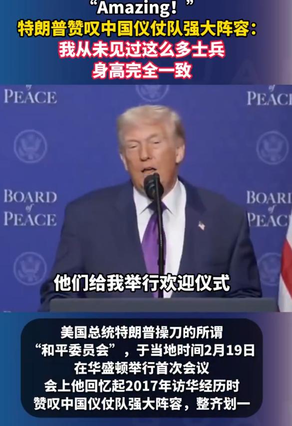 川普最近在台上聊得最起劲的,不是关税也不是芯片,反而提起解放军仪仗队:头盔齐得像一条线,平得“能当台球桌”。这话一出口,现场那种严肃味儿直接变成段子场,但画面感一下就有了——你不用懂啥礼仪标准,脑子里已经能浮现出那种整齐到发怵的队列。 这也挺符合他路数。别人讲话靠稿子和术语,他靠“能听懂”的比喻抢注意力,把大场面翻译成普通人能秒懂的词。听着像随口一夸,信息其实很硬:他记住的不是某个武器参数,而是“秩序”和“执行力”。 更有意思的是,被这支队伍震住的共和党总统不止他一个。1972年尼克松访华,回忆录里也专门写过仪仗队:人走过长队列,每个士兵缓缓转头注视,队伍像带着一种“催眠感”。一个说“催眠”,一个说“台球桌”,说法不一样,落点一样——忘不掉。 为啥忘不掉?这玩意儿不是靠喊口号出来的。三军仪仗队挑人本来就苛刻,身高体型一套标准卡得死;单个拎出来已经够挺拔,凑成上百人的方阵再做到分毫不差,那种压过来的秩序感,本质上就是一个国家组织动员能力的外显。川普还补过一句:得是14亿人口的国家才做得到。听着像夸,骨子里是掂量分量。 问题来了,他为啥偏偏在访华前一个多月,把九年前的旧事翻出来讲?那会儿中美桌上摆的都是硬菜:贸易休战、芯片管制、农产品、波音、能源、台湾……谁都不想先松口。他手里牌还受了点影响,国内外压力也在,越需要把气氛先铺一层“我带着尊重来”的底色。 所以这段“仪仗队故事”既是情绪牌,也是信号牌:我记得你强、也认你强,咱先把场面摆顺,再谈价码。好听的话讲完,真正要较劲的,还是那张谈判桌上的筹码和定力。