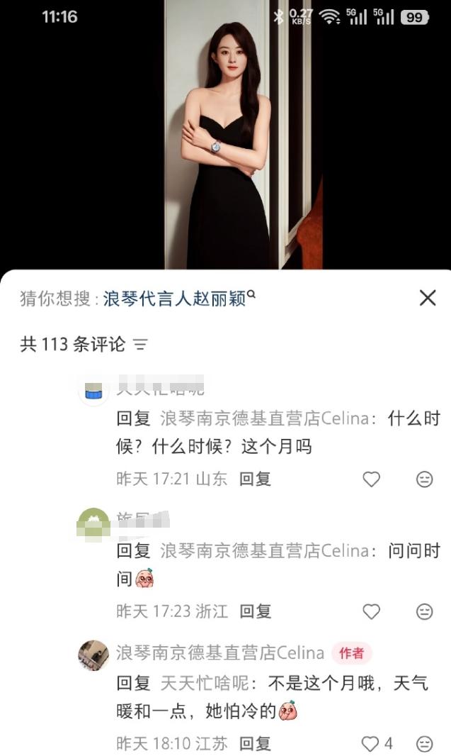 有博主爆料赵丽颖拍了浪琴新物料! 赵丽颖的保密工作做得太好了,几乎打听不到她的真瓜,接连好几个剧本的爆料,直到杀青她都没进组,她现在品牌活动也不太出席,自己的剧播出,最多也只参加一次剧宣,品牌直播也几乎没有,狗仔天天蹲点也拍不到她,这次不但有博主爆料了她拍了浪琴新物料,浪琴柜姐也爆料她今年会出席浪琴线下活动。